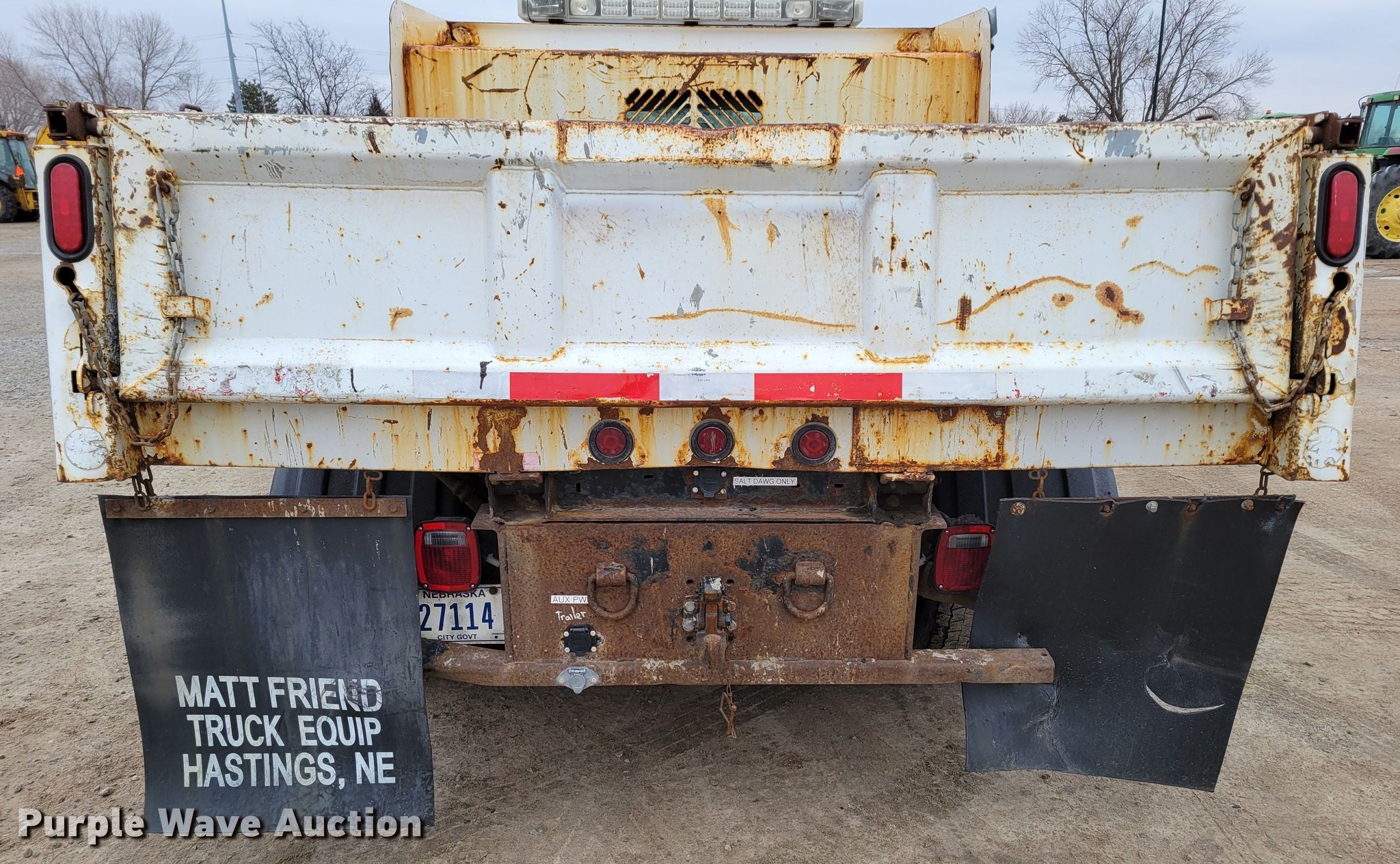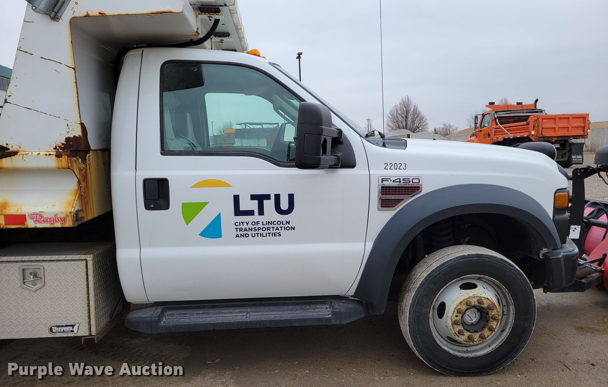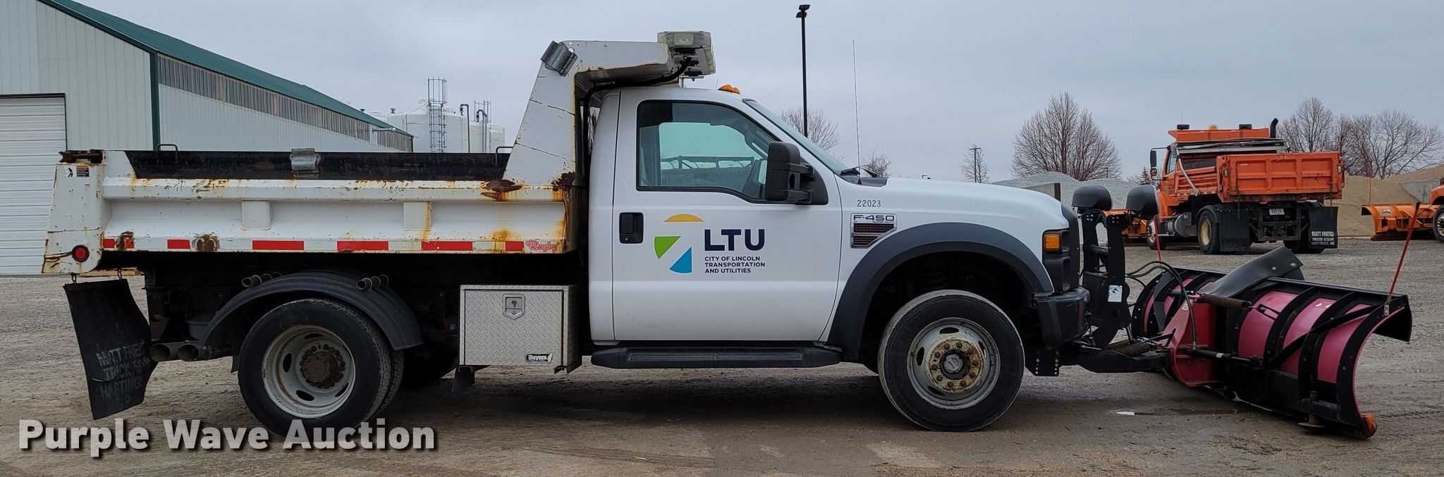 2008 Ford F450 Super Duty XL dump truck. Miles: 93,551 on odometer, VIN: 1FDXF47R28EC66557, Unit #: 22023. Engine Displacement: 6.4L, Cylinders: 8, Fuel type: Diesel. Transmission Automatic. Chassis Four wheel drive, Axles: Single, Suspension: Spring, Brakes: Hydraulic, PTO. Interior AC, Heat, Cruise control, Brake controller. Features Dump bed Rugby, 110" L x 96" W, Side height: 16", Side board height: 6", Bed type: Steel, Ram: Single , End gate: Manual, Plow Boss V plow, Width: 108". Tires Size: 225/7019.5. Notes Dash warning indicator: Check engine, Engine issues, power loss issues when warm Possible fuel injector pump issues. Nebraska title. Title distribution may be delayed up to 14 days from verification of funds. Lincoln Fleet Services. 901 West Bond Street. Lincoln, NE 68521