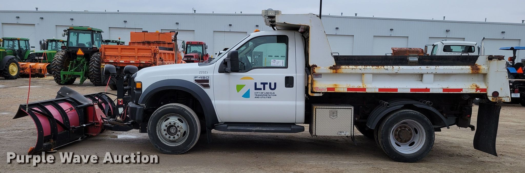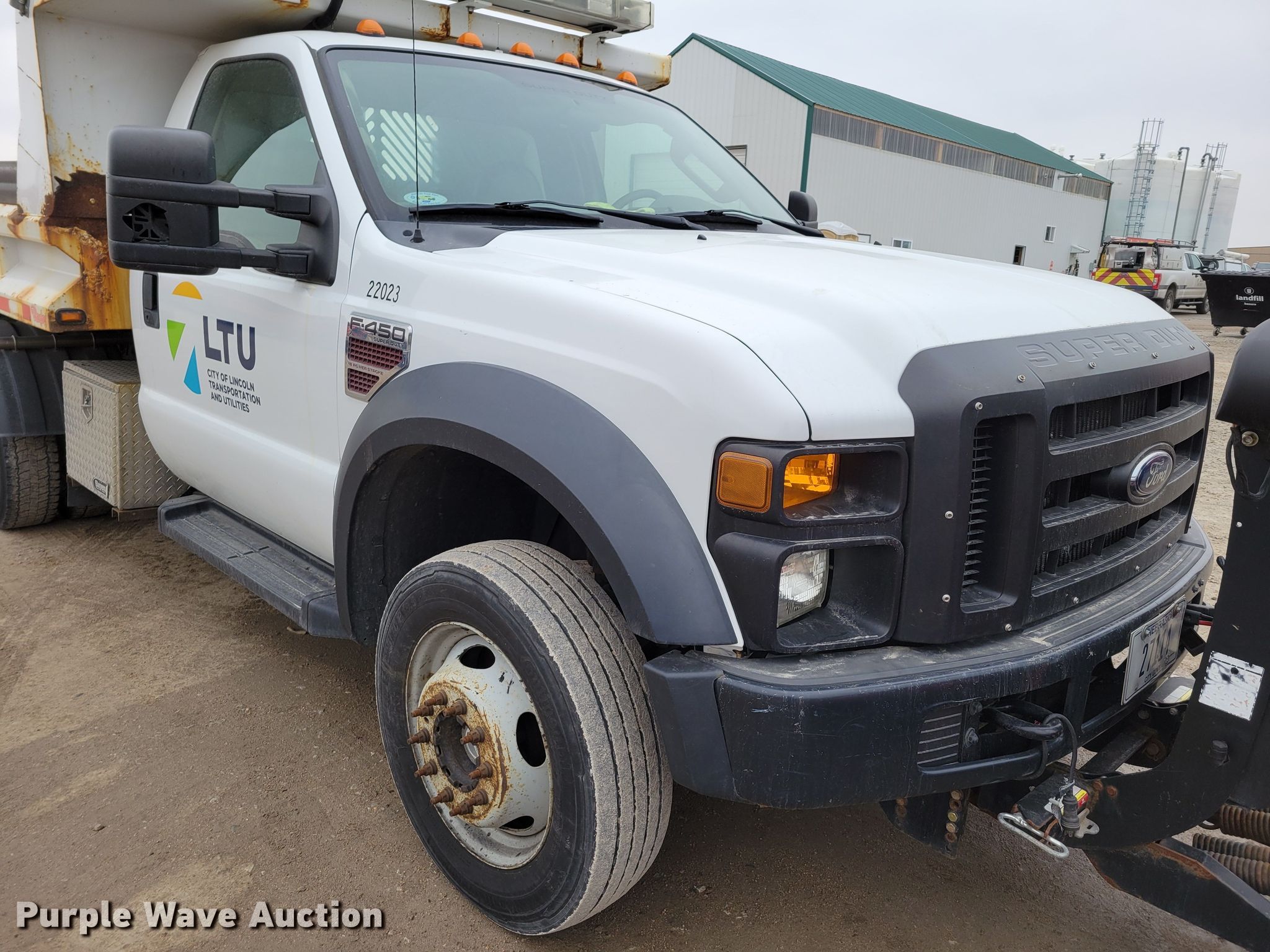Purple Wave is selling a used Construction Dump Truck in Nebraska. This item is a 2008 Ford F450 Super Duty XL dump truck with the following: Miles: 93,551 on odometer, VIN: 1FDXF47R28EC66557, Unit #: 22023