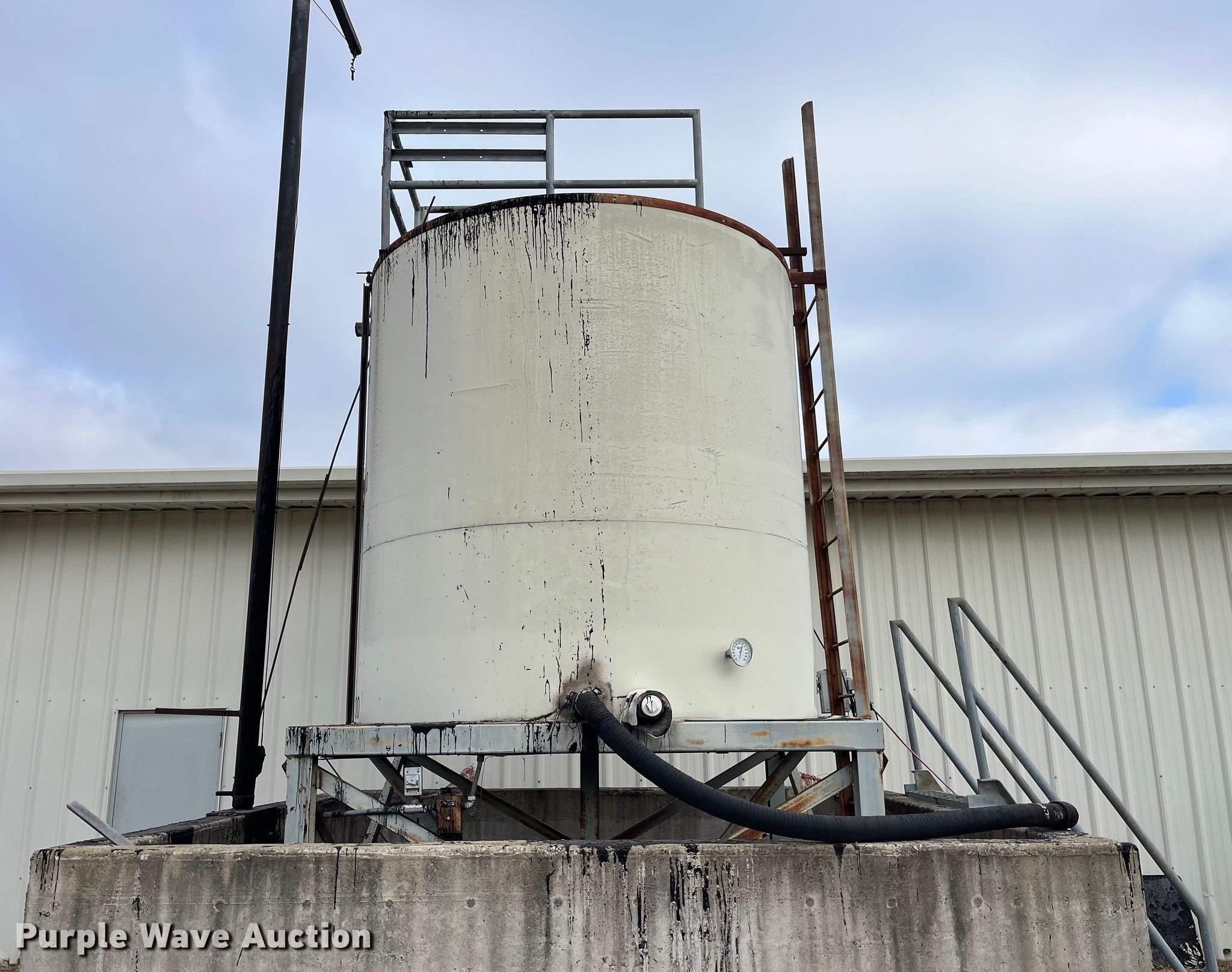 Purple Wave is selling a used Tanks in Missouri. This item is a Emulsion tank with the following: 3,000 gallon capacity, Type: Steel, Fiberglass, 3" diameter hose, (3) heat blankets, 220V, (2) non-operational blankets, A.O. Smith Century AC electric motor, 115/230V, Single phase, 3/4 HP, 60 Hz, Platform, 104" x 104" base, Contents in tank included, Concrete barrier, steps, and hoist not included