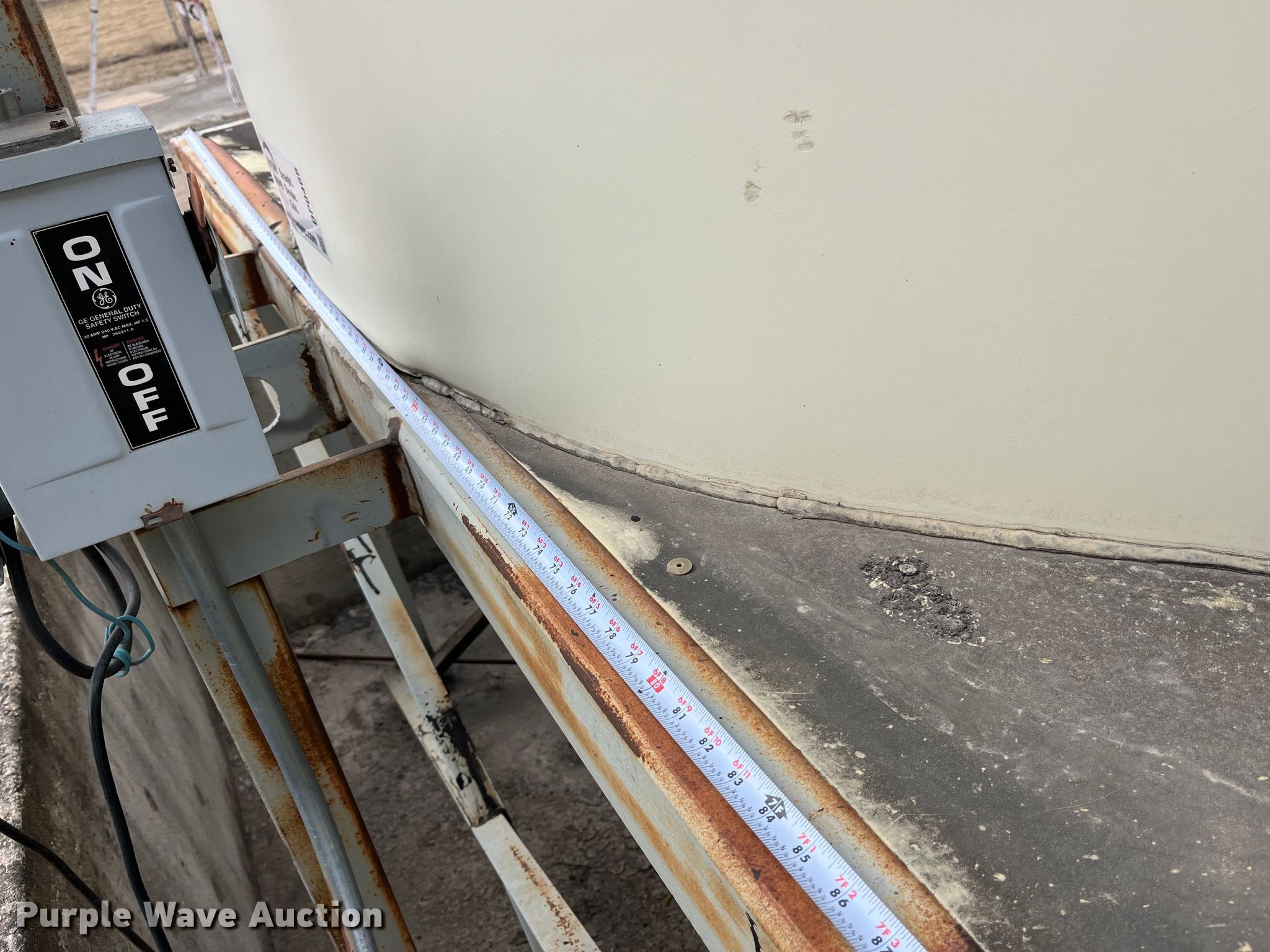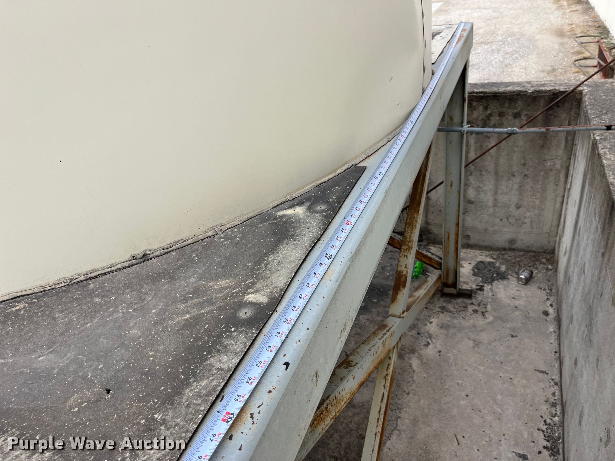 Emulsion tank. 3,000 gallon capacity, Type: Steel, Fiberglass, 3" diameter hose, (3) heat blankets 220V, (2) non-operational blankets, A.O. Smith Century AC electric motor 115/230V, Single phase, 3/4 HP, 60 Hz, Platform 104" x 104" base, Contents in tank included, Concrete barrier, steps, and hoist not included. City of Kirksville MO. 2001 North Osteopathy. Kirksville, MO 63501