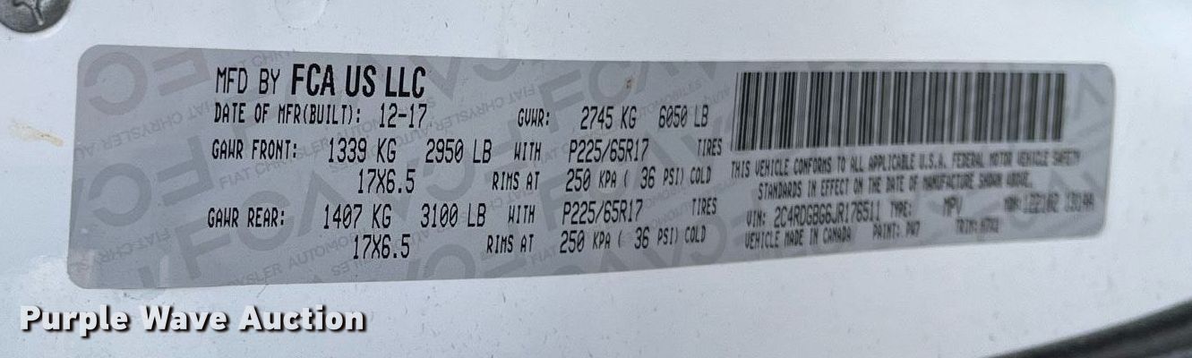 Purple Wave is selling a used Passenger Vehicle in Kansas. This item is a 2018 Dodge Grand Caravan van with the following: Miles: 198,386 on odometer, VIN: 2C4RDGBG6JR176511