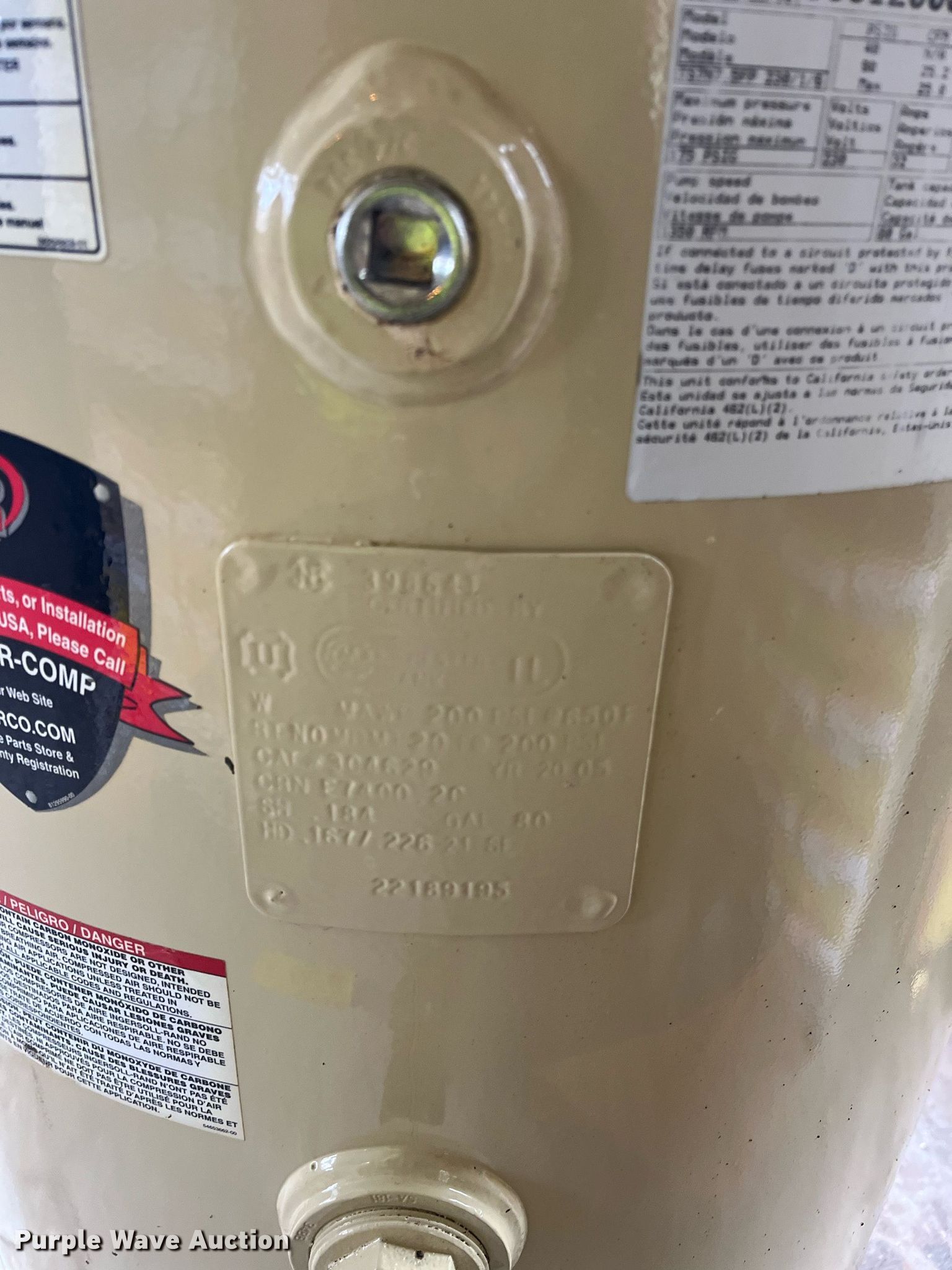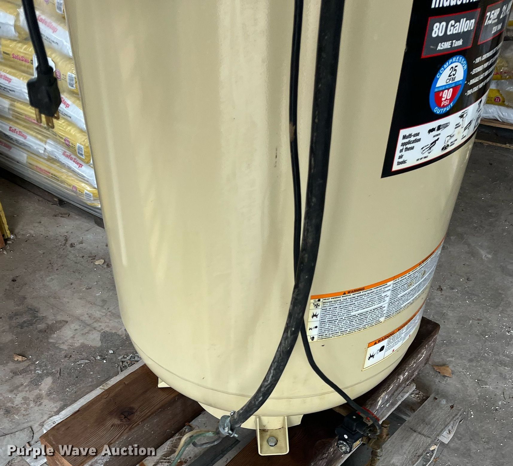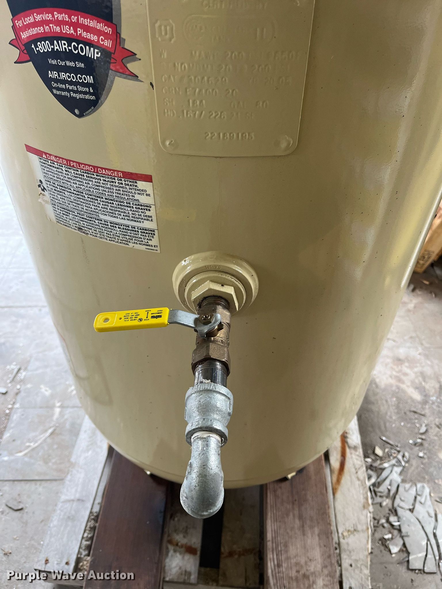 Ingersoll Rand TS7 air compressor. Serial: 999514. Features Capacity: 80 gallons, PSI: 175. Electric Motor HP: 7.5, Phase: Single. Notes Plug missing. Renwick USD 267. Andale, KS 67001