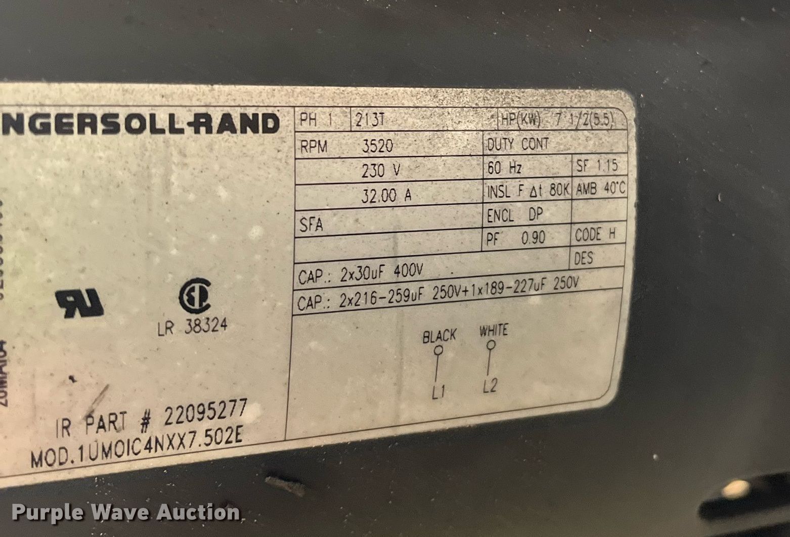 Purple Wave is selling a used Air Compressor in Kansas. This item is a Ingersoll Rand TS7 air compressor with the following: Serial: 999514