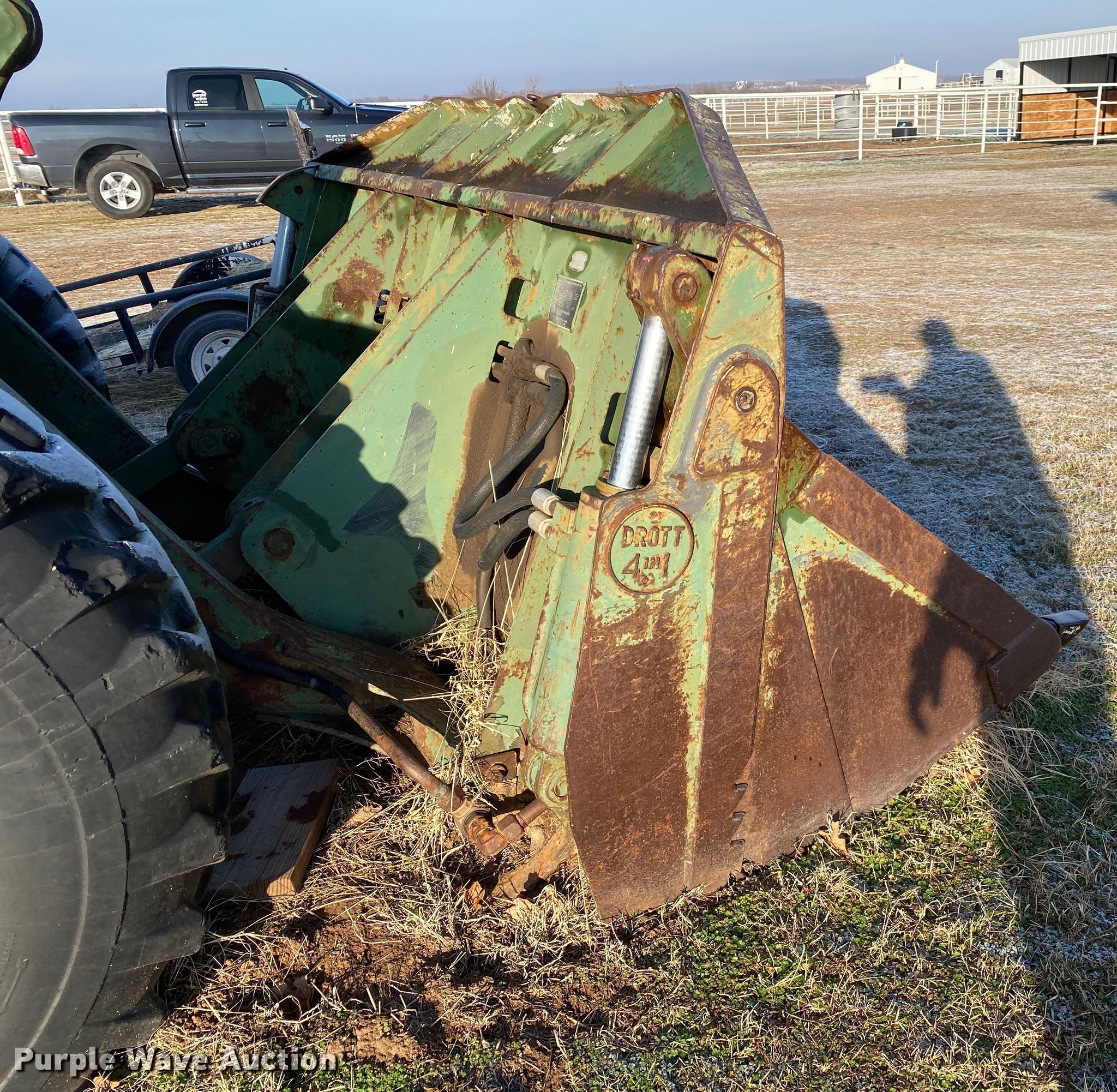 1967 Drott H-90CM wheel loader. Hours: 6,367 on meter, Serial: 02601, Sale #: 2323-KP. Engine Cummins, Cylinders: 6, Fuel type: Diesel. Transmission Powershift, 3F - 3R. Features Bucket Drott, Width: 98", Four-in-one, Teeth: 8. Tires Size: 16.00-24. Notes Flat tire, Rust damage, Non-operational unit, All aspects of disassembly and removal are the sole responsibility of the purchaser.. Oklahoma State University. 14021 West 32nd Street. Stillwater, OK 74074