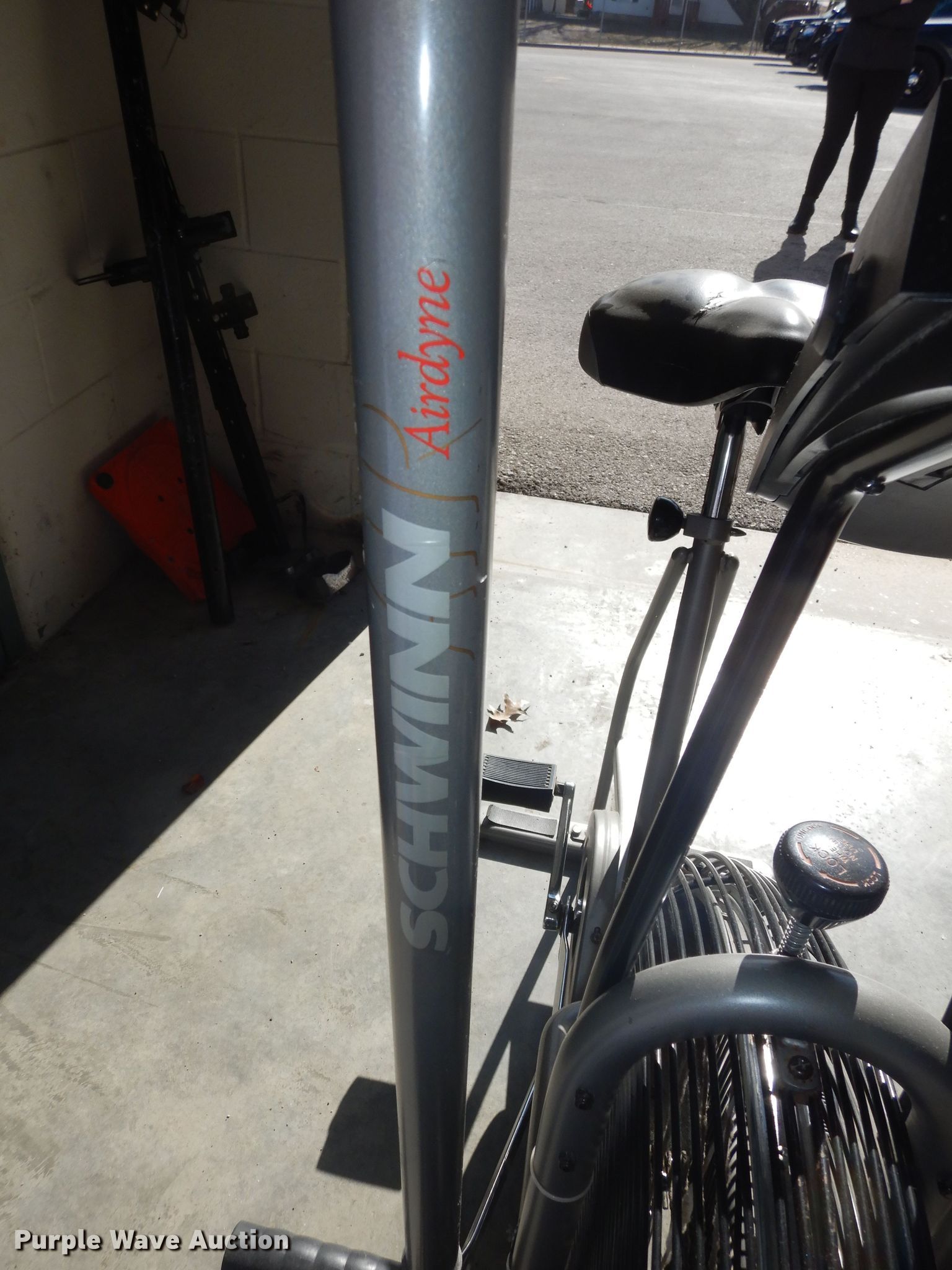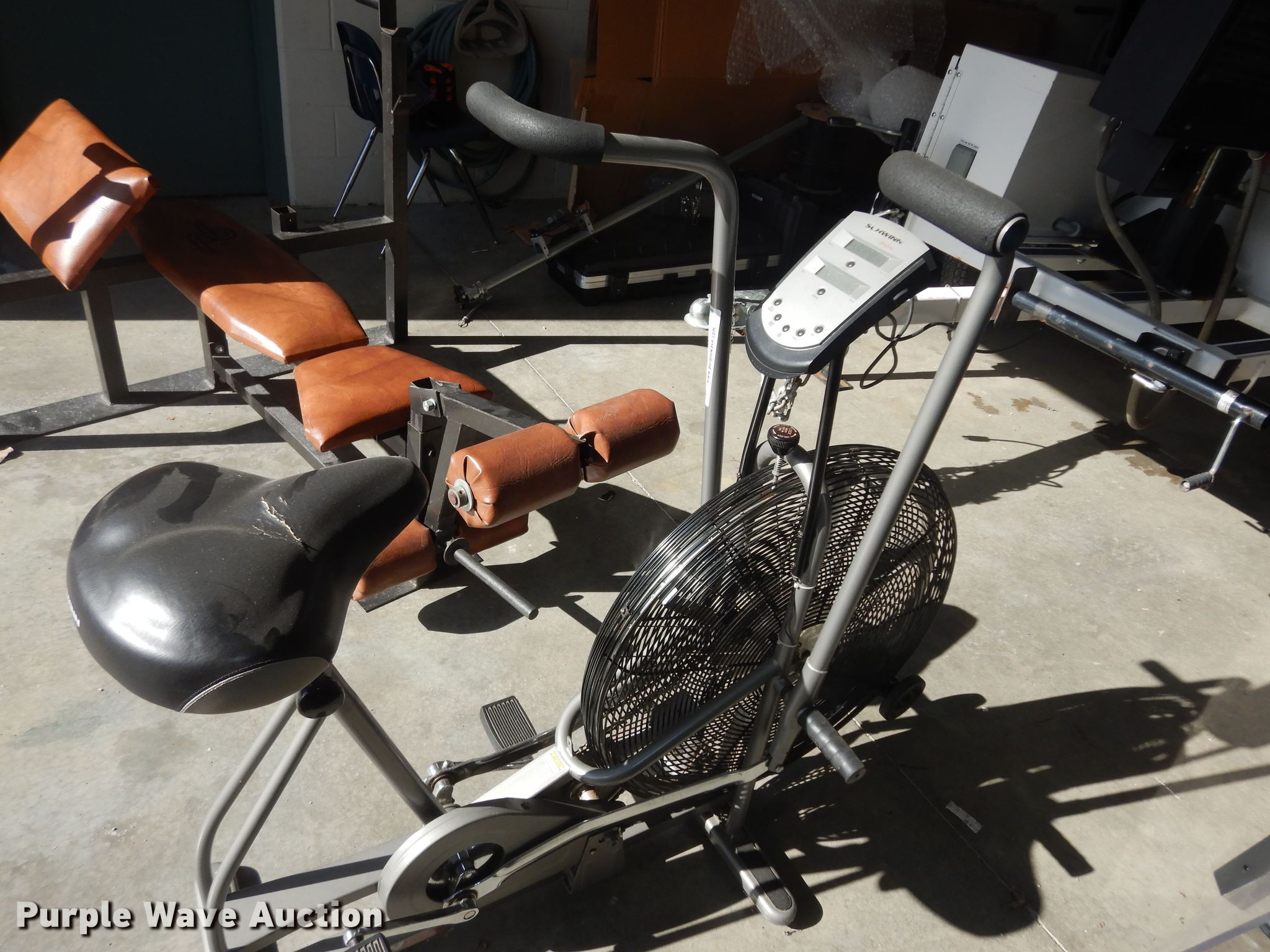 Purple Wave is selling a used Sporting Goods in Kansas. This item is a Exercise equipment with the following: Schwinn Airdyne bike, Parabody bench