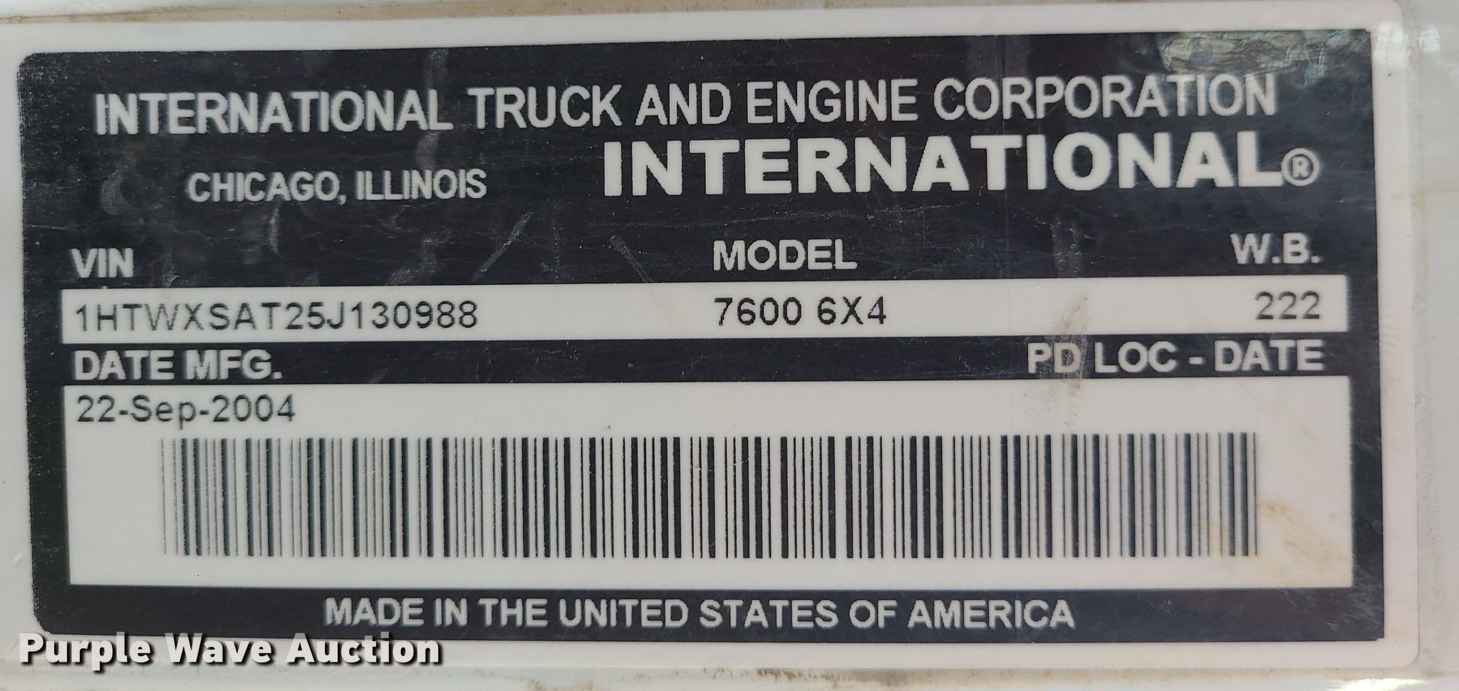 Purple Wave is selling a used Truck Chassis in Missouri. This item is a 2005 International 7600 truck cab and chassis with the following: Miles: 79,565 on odometer, VIN: 1HTWXSAT25J130988