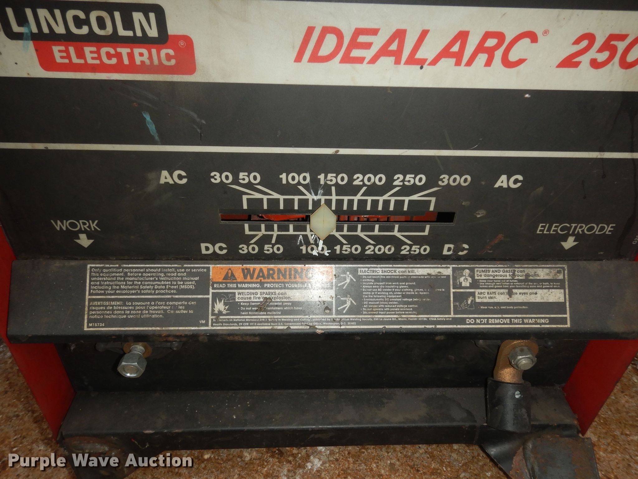 Purple Wave is selling a used Welder (Manual) in Kansas. This item is a Lincoln Electric Idealarc 250 welder with the following: Serial: C1990700107