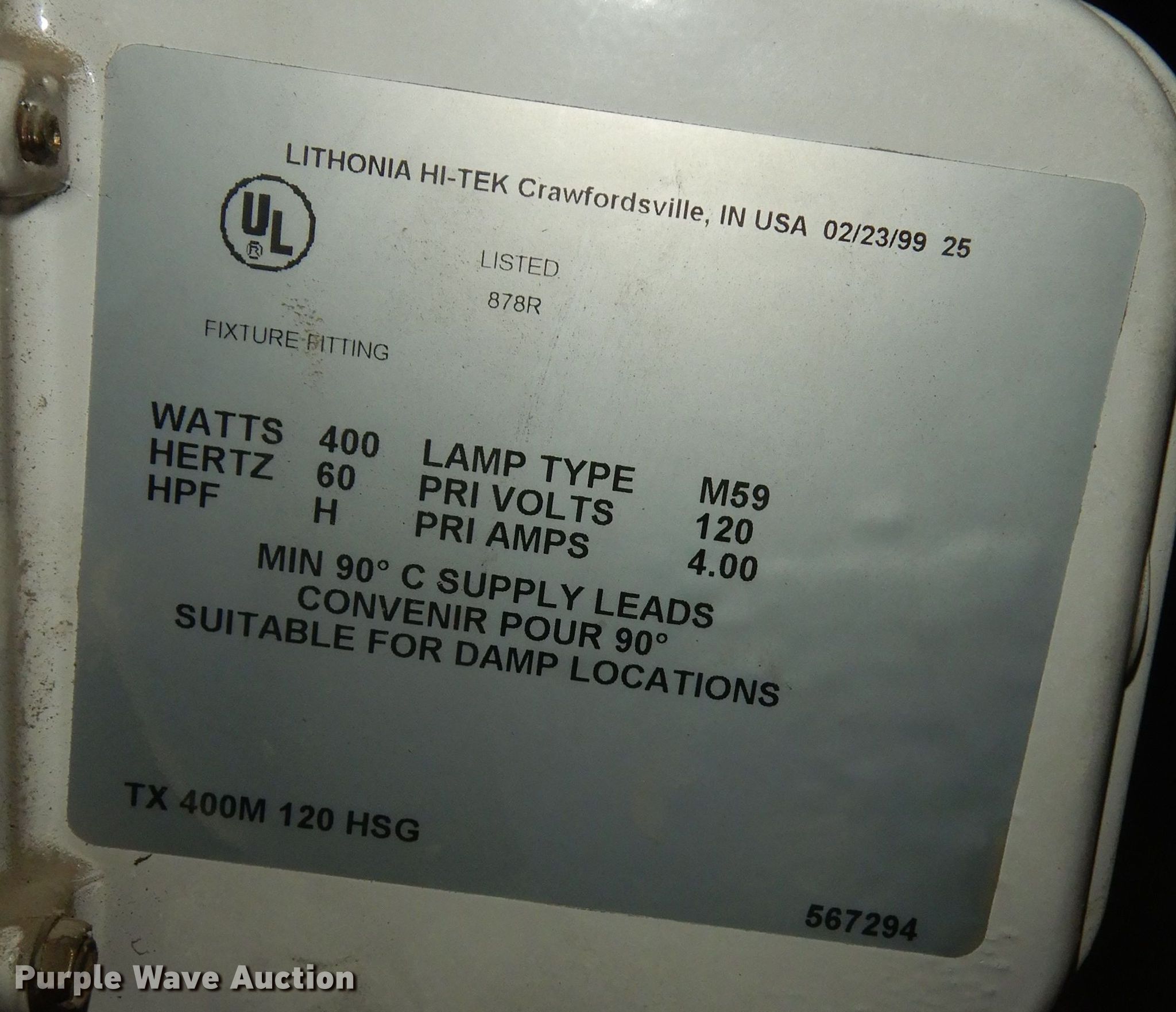 Purple Wave is selling a used Building Materials in Kansas. This item is a (6) Halide lights with the following: 400 watts, Bulbs, Covers