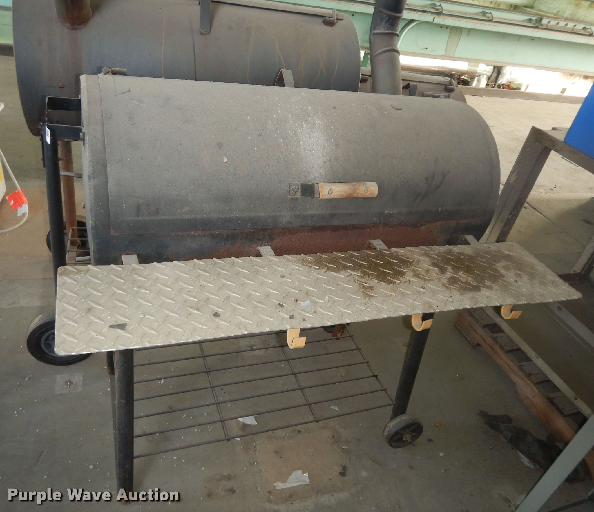 Purple Wave is selling a used Lawn and Garden in Kansas. This item is a Lawn and garden equipment with the following: Charcoal grill, 3', Charcoal smoker, 52"