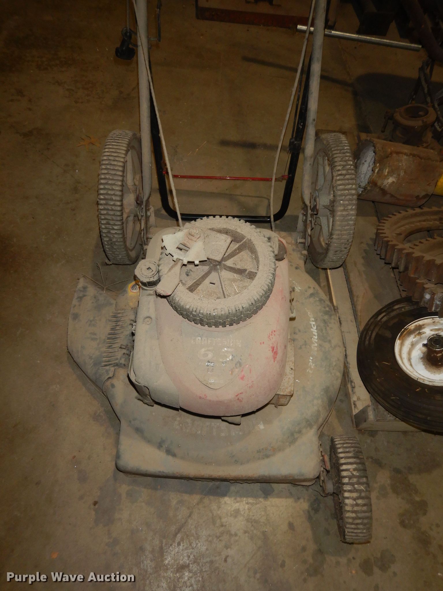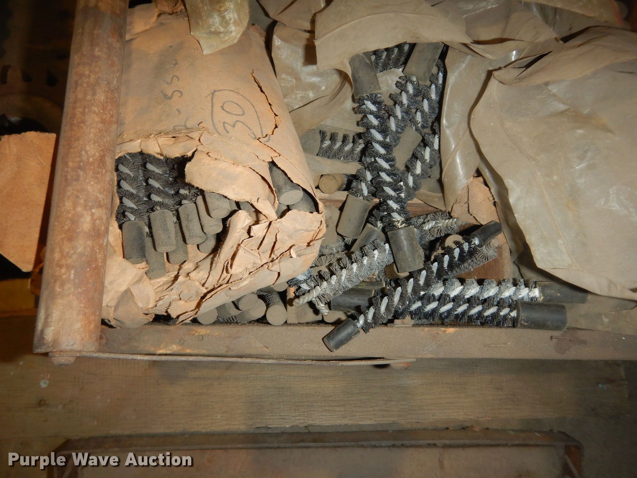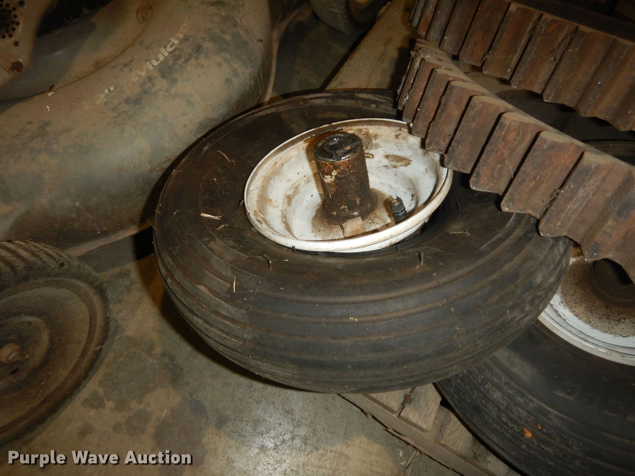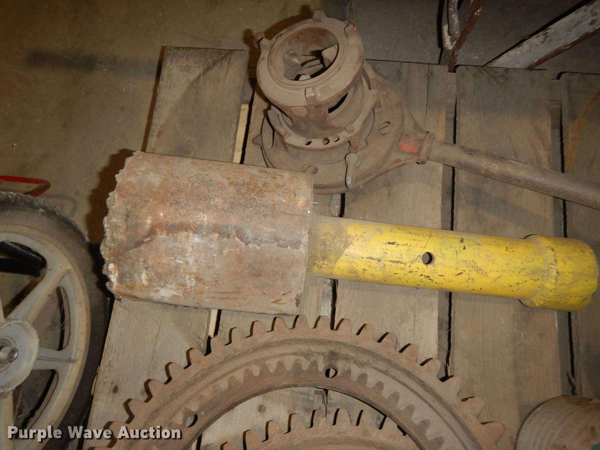 Purple Wave is selling a used Tools in Kansas. This item is a Tools with the following: Push mower, Wheelbarrow, Dolly, Tires, Auger bit, Pipe threader, Bristle bits, Cogs