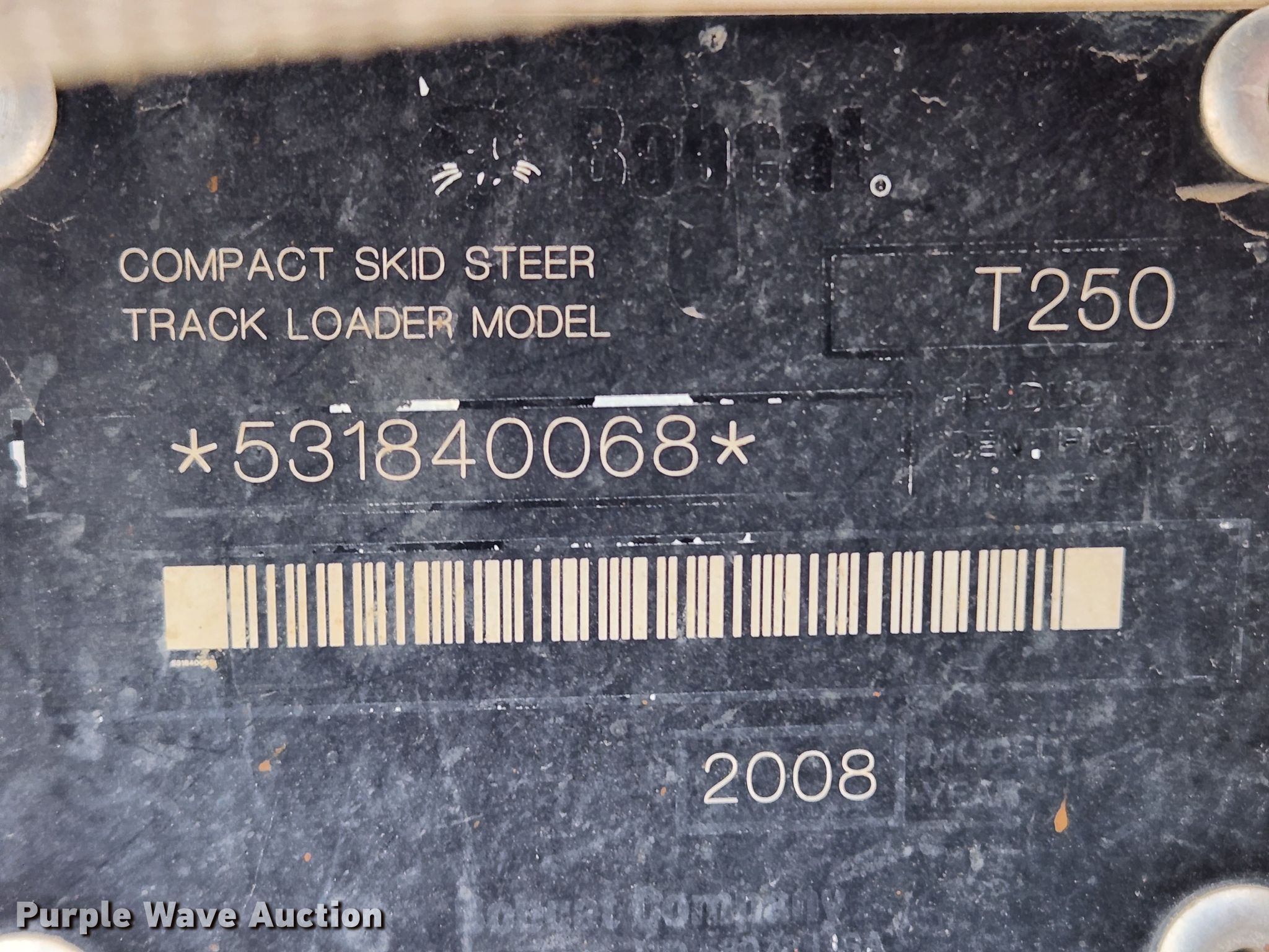 Purple Wave is selling a used Skid Steer Loader in Missouri. This item is a 2008 Bobcat T250 skid steer loader with the following: Hours: 1,900 on meter, Serial: 531840068