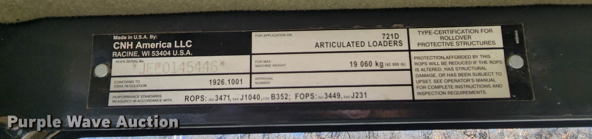 Purple Wave is selling a used Wheel Loader in Illinois. This item is a 2005 Case 721D XT wheel loader with the following: Hours: 3,930 on meter, Serial: JEE0138040