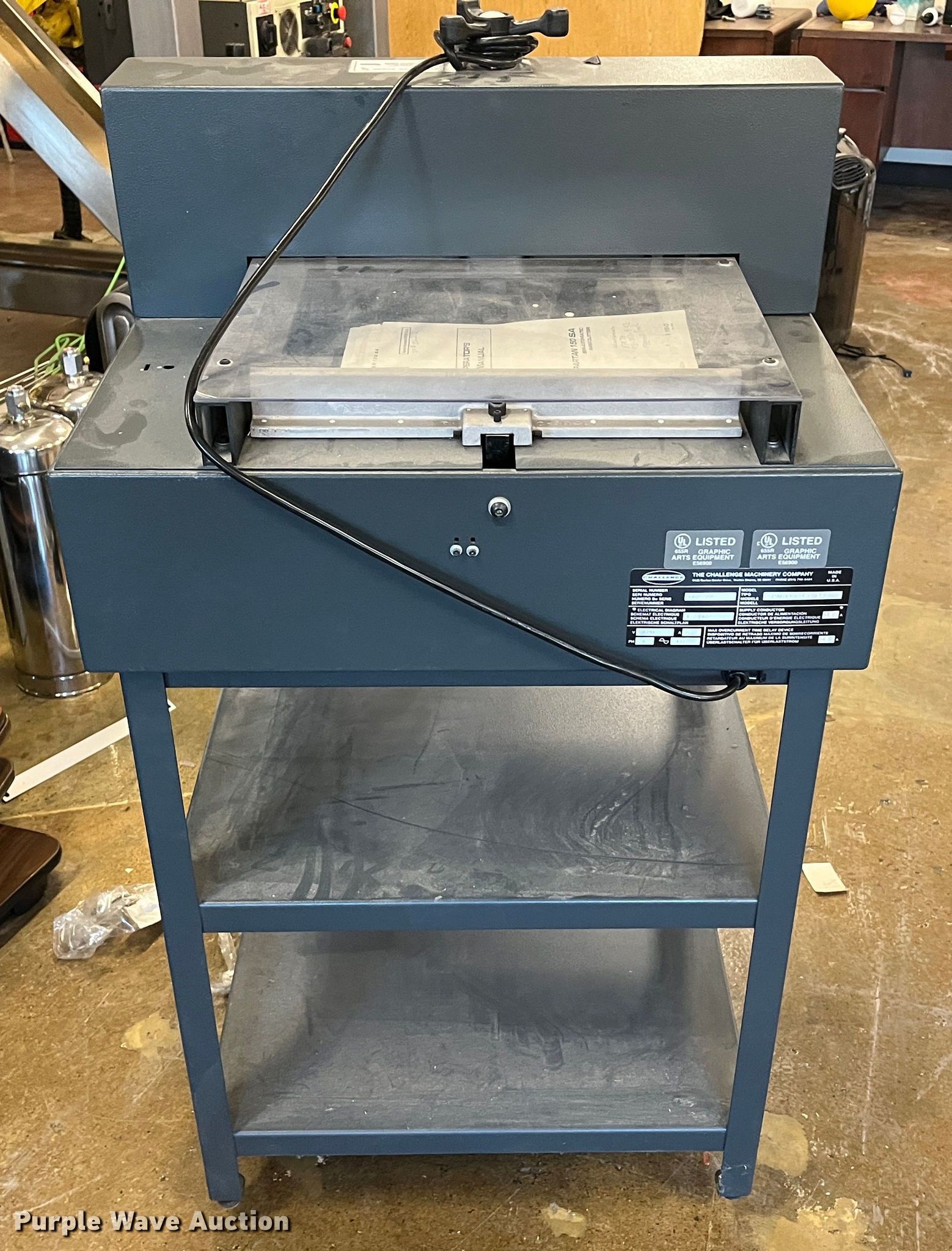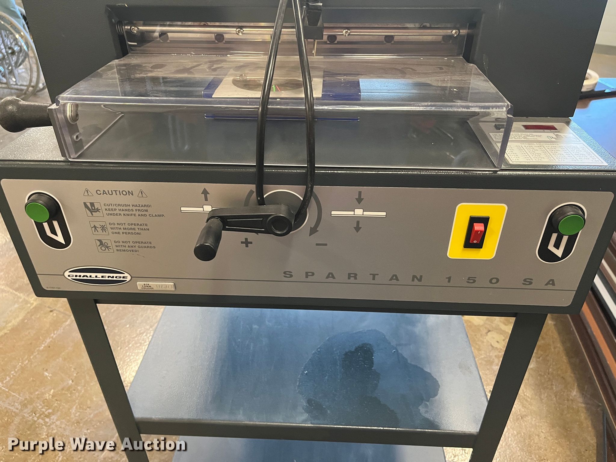 Purple Wave is selling a used Office Supplies and Equip. in Kansas. This item is a Challenge Spartan 150SA paper cutter with the following: 120V, Single phase, Serial: 062272