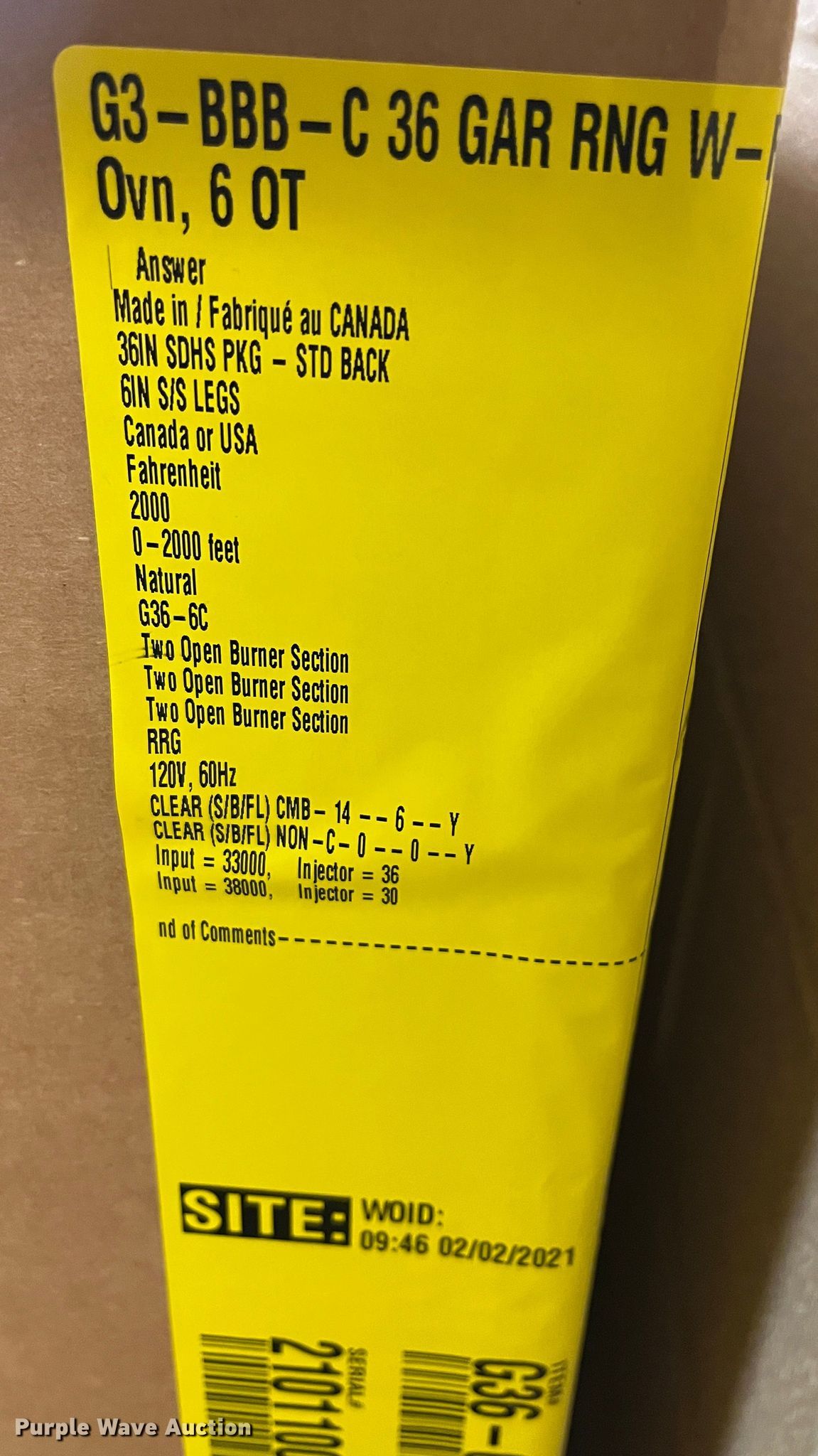 Purple Wave is selling a used Appliances in Kansas. This item is a Garland range with the following: 120V, Single phase, Natural gas fired