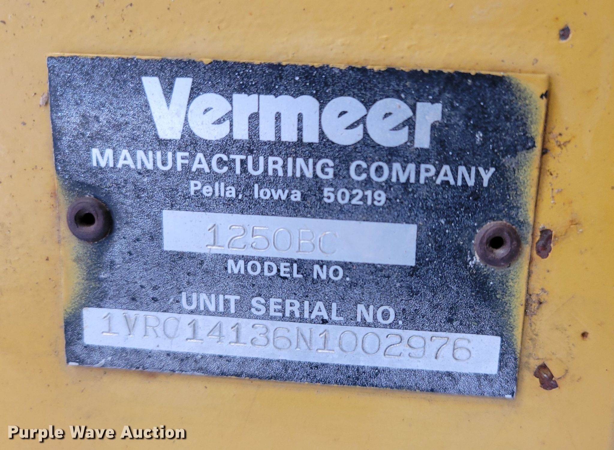 Purple Wave is selling a used Wood Chipper or Stump Grinder in Kansas. This item is a 1992 Vermeer 1250BC wood chipper with the following: Hours: 1,714 on meter, VIN: 1VRC14136N1002976