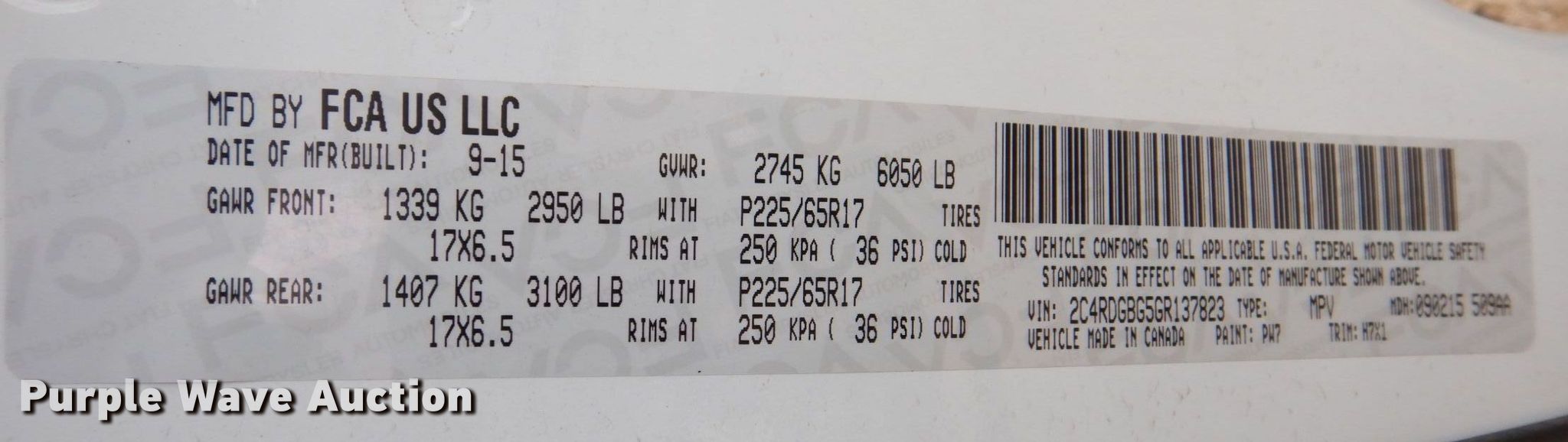 Purple Wave is selling a used Passenger Vehicle in Iowa. This item is a 2016 Dodge Grand Caravan SE van with the following: Miles: 154,594 on odometer, VIN: 2C4RDGBG5GR137823