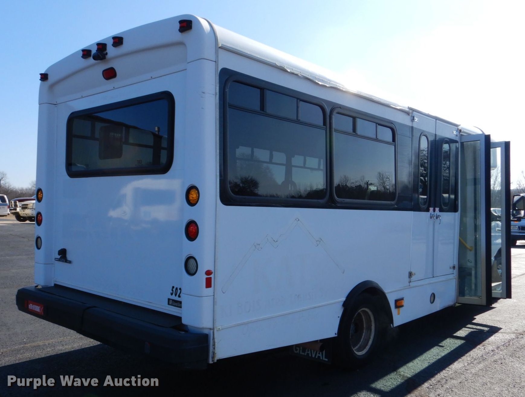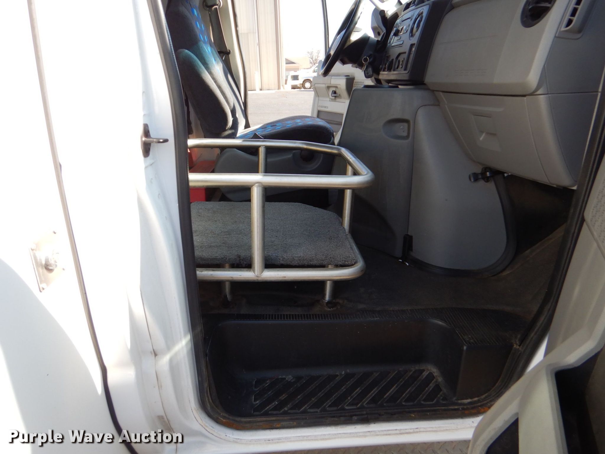 2014 Ford E450 shuttle bus. Miles: 207,638 on odometer, Hours: 2,592 on meter, VIN: 1FDXE4FSXEDB10257, Unit #: 502. Engine Displacement: 6.8L V10 SOHC, Cylinders: 10, Fuel type: Gas. Transmission Automatic. Chassis Axles: Single, Suspension: Spring, Brakes: Hydraulic, GVWR: 14,500 lbs, Wheelbase: 158". Interior AC, Heat, Cruise control, Electric passenger sliding door, Passengers: 15, Wheelchair lift. Tires Size: LT225/75R16. Notes Windshield chipped or cracked. Oklahoma title. Title distribution may be delayed up to 30 days from verification of funds. Kibois area Transit. 1107 Industrial Rd. Stigler, OK 74462