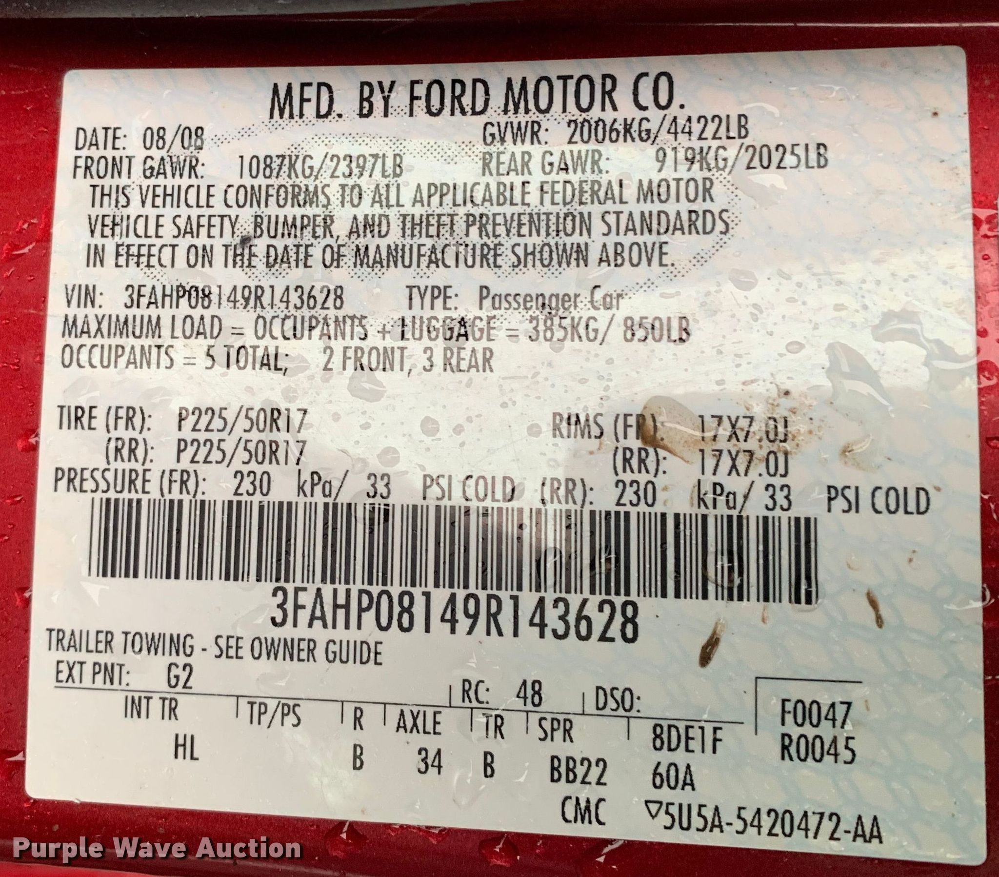 - VIN: 3FAHP08149R143628