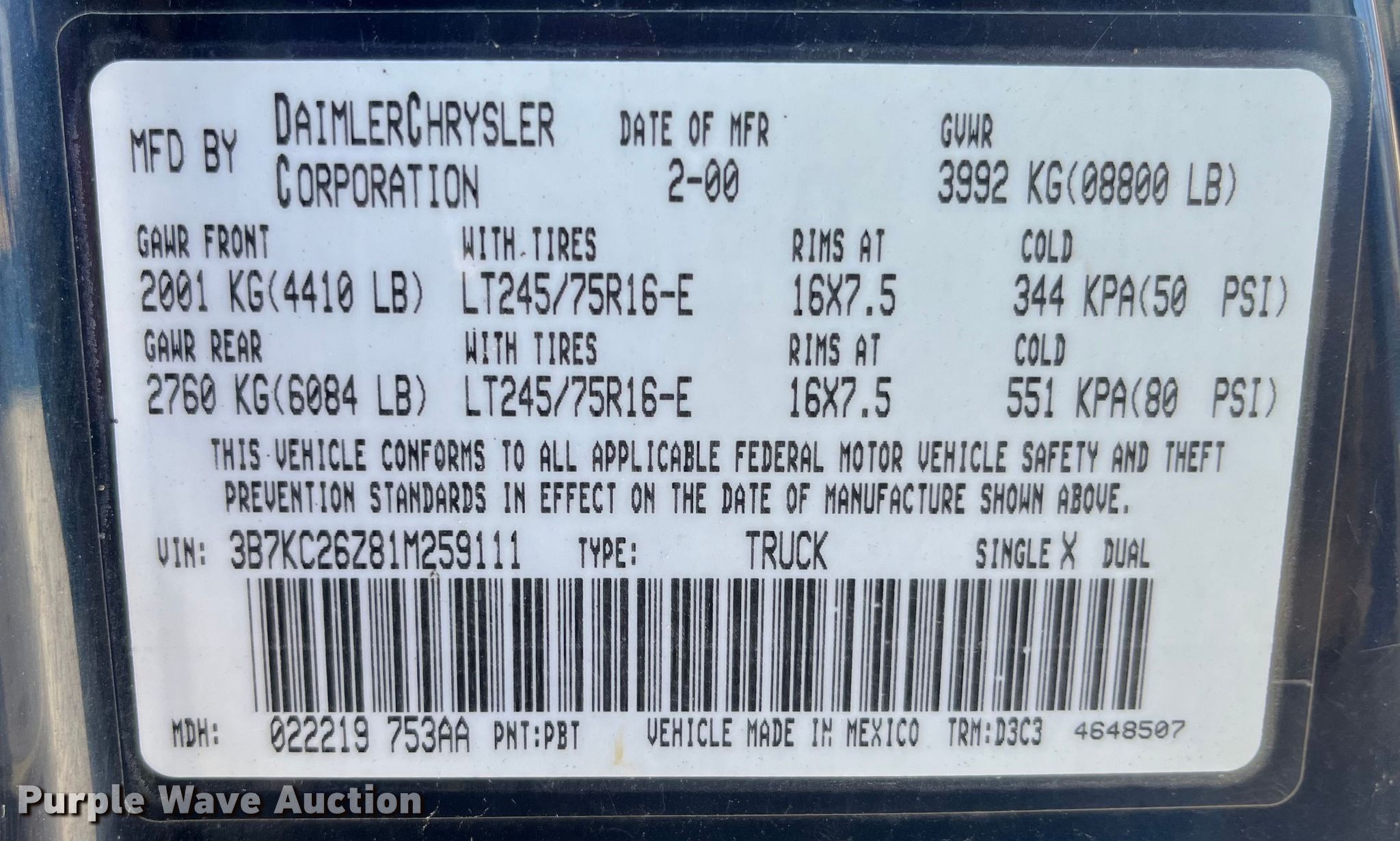 Purple Wave is selling a used 3/4 or 1 Ton Pickup or Van in Missouri. This item is a 2001 Dodge Ram 2500 pickup truck with the following: Miles: 107,126 on odometer, VIN: 3B7KC26Z81M259111