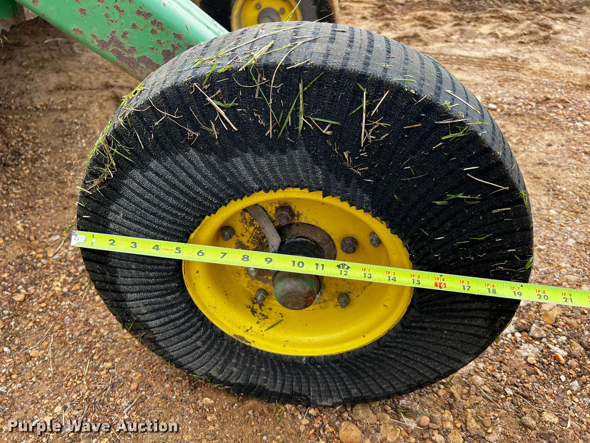 John Deere 1518 rotary mower. Serial: 203725. Features Width: 15', Hydraulic lift, Hydraulic fold, PTO: 540. Tires Solid. Notes Tractor not included. TNC Outdoors. 2827 FM 1624. Giddings, TX 78942