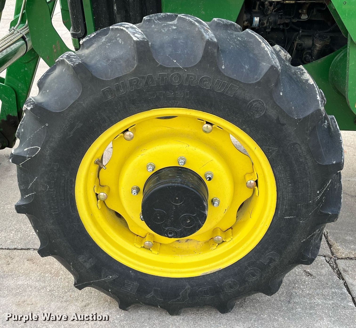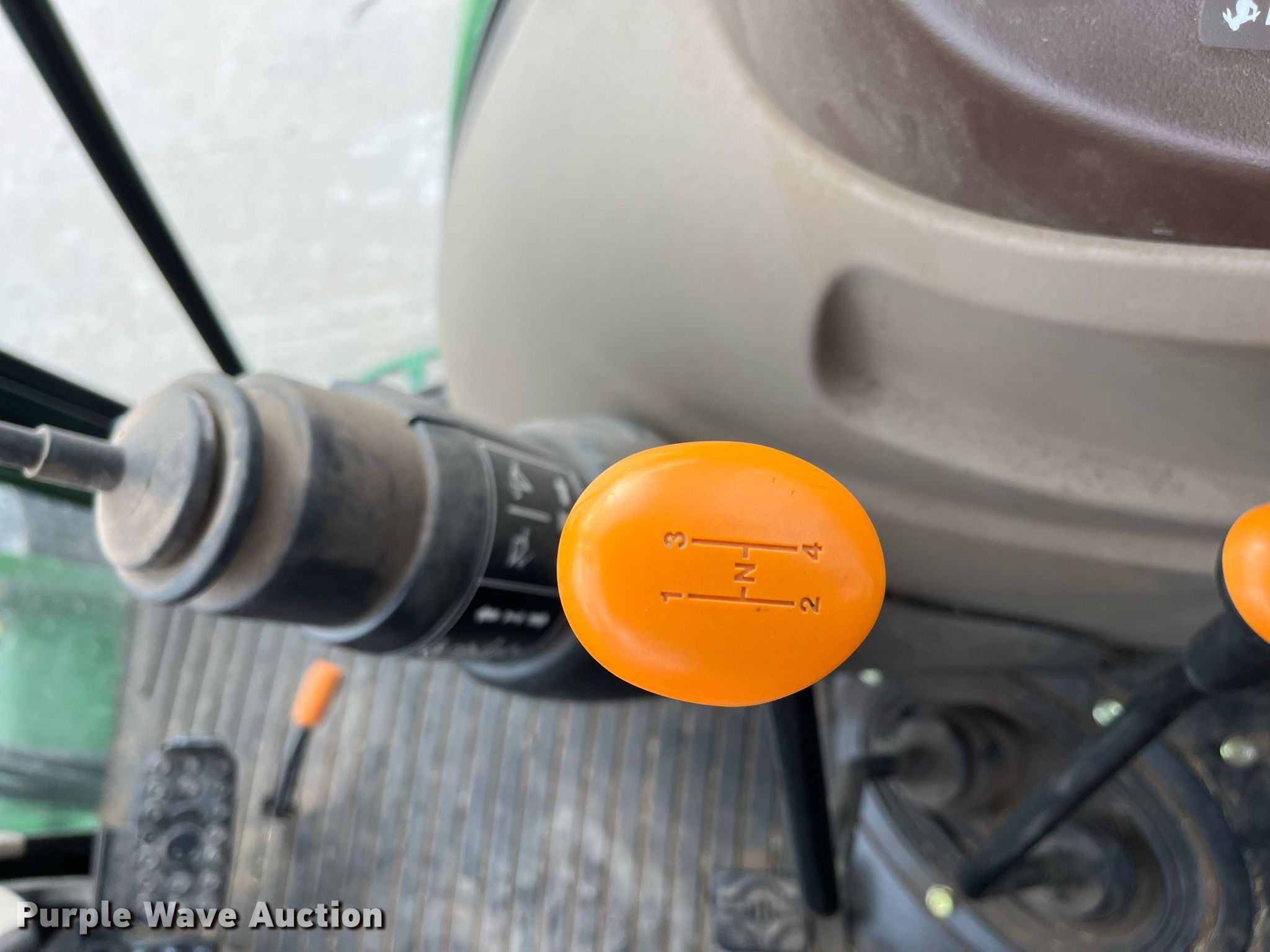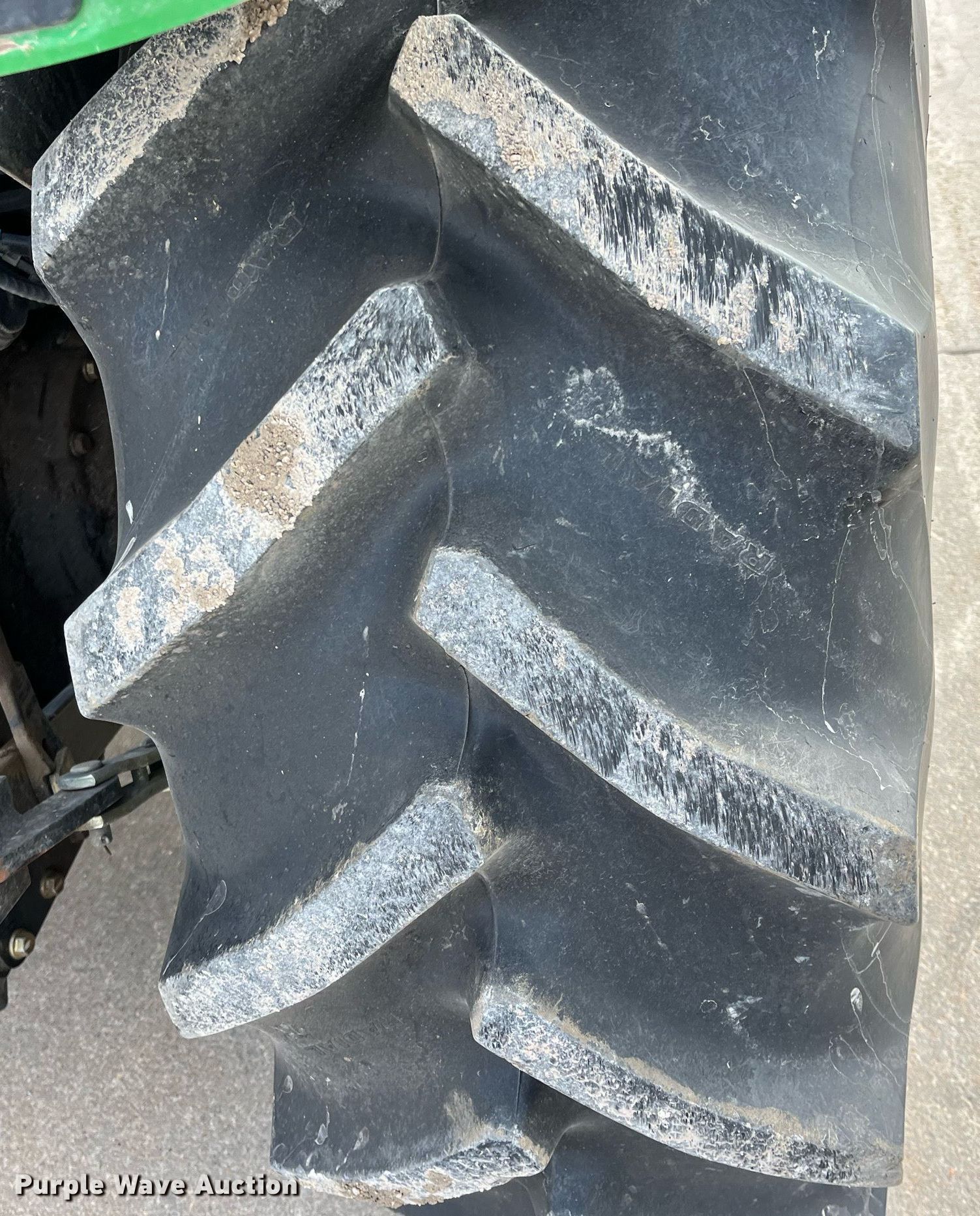 2004 John Deere 5520 MFWD tractor. Hours: 762 on meter, Serial: LV5520P457306. Engine Displacement: 4.5L, Cylinders: 4, Fuel type: Diesel. Transmission Synchro, 12F - 12R, Left-hand reverser. Operators station AC, Heat. Features PTO: 540, Three point Top link, Hydraulic remote sets Rear: 3, Loader John Deere 542, Quick attach, Self-leveling, Bucket Width: 72".. Tires Front: 12.4-24, Rear: 18.4R30, Wheel weights: 6. Conco Construction. 3051 N Ohio St. Wichita, KS 67219
