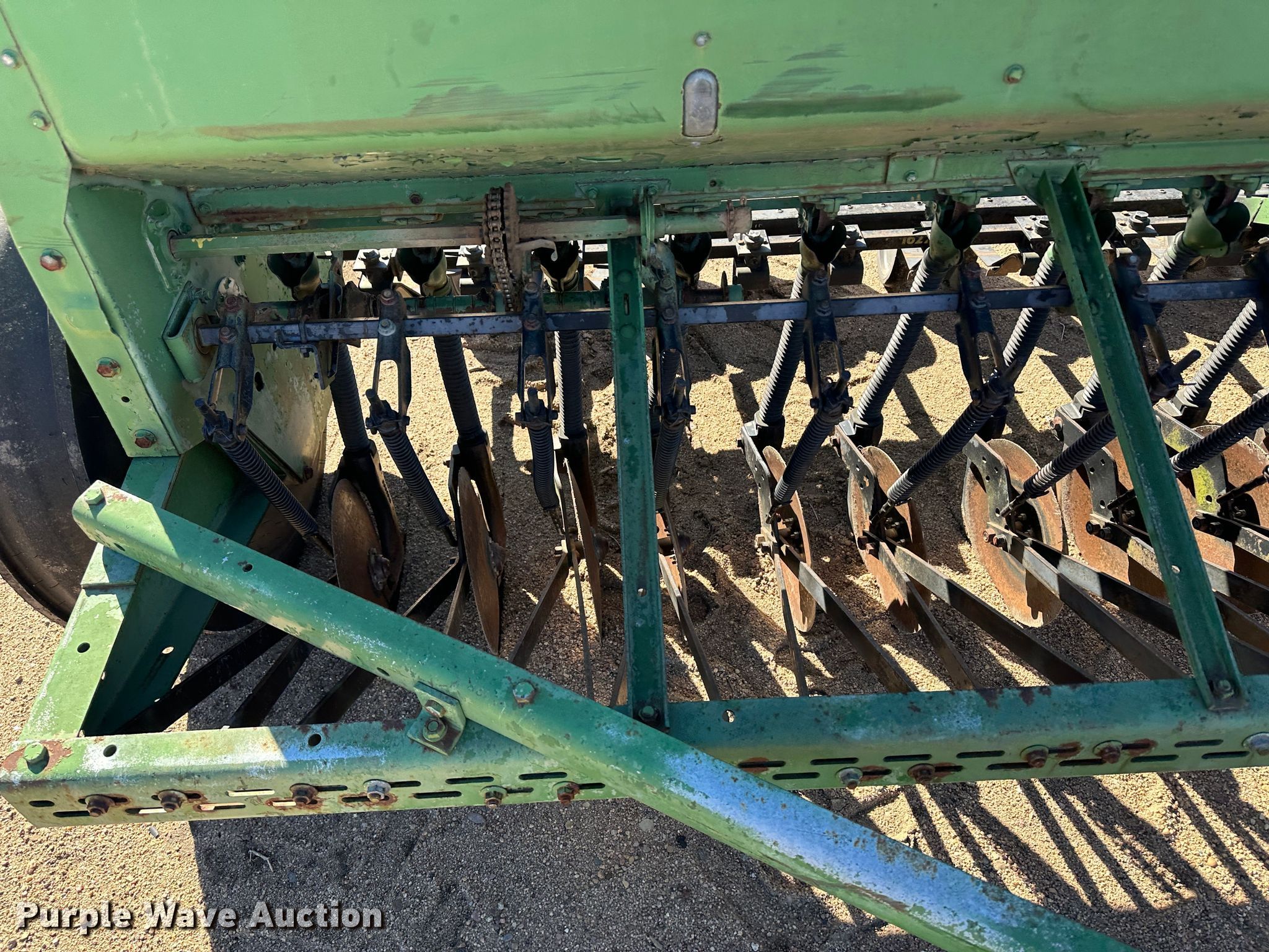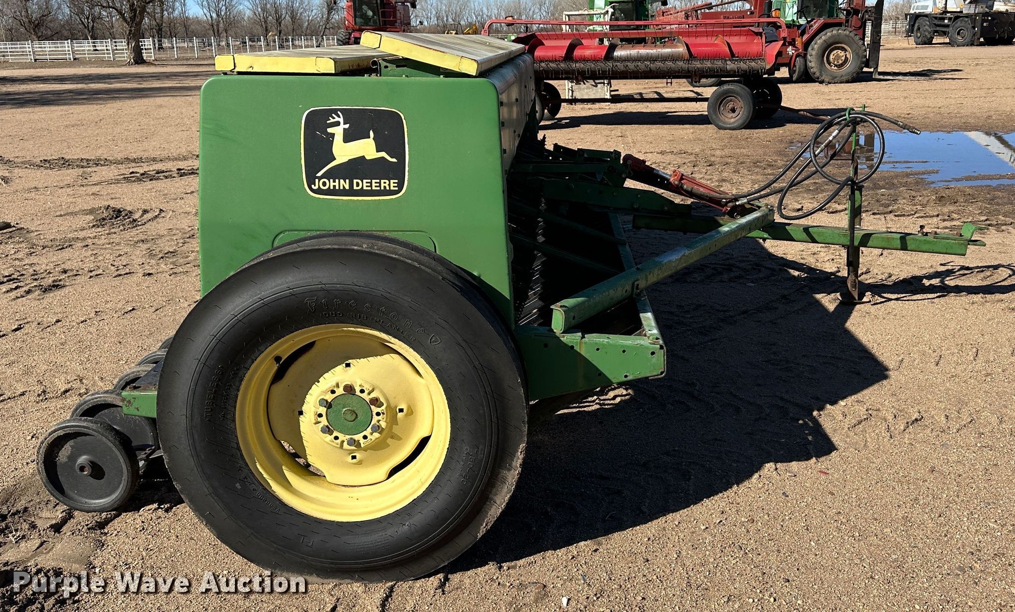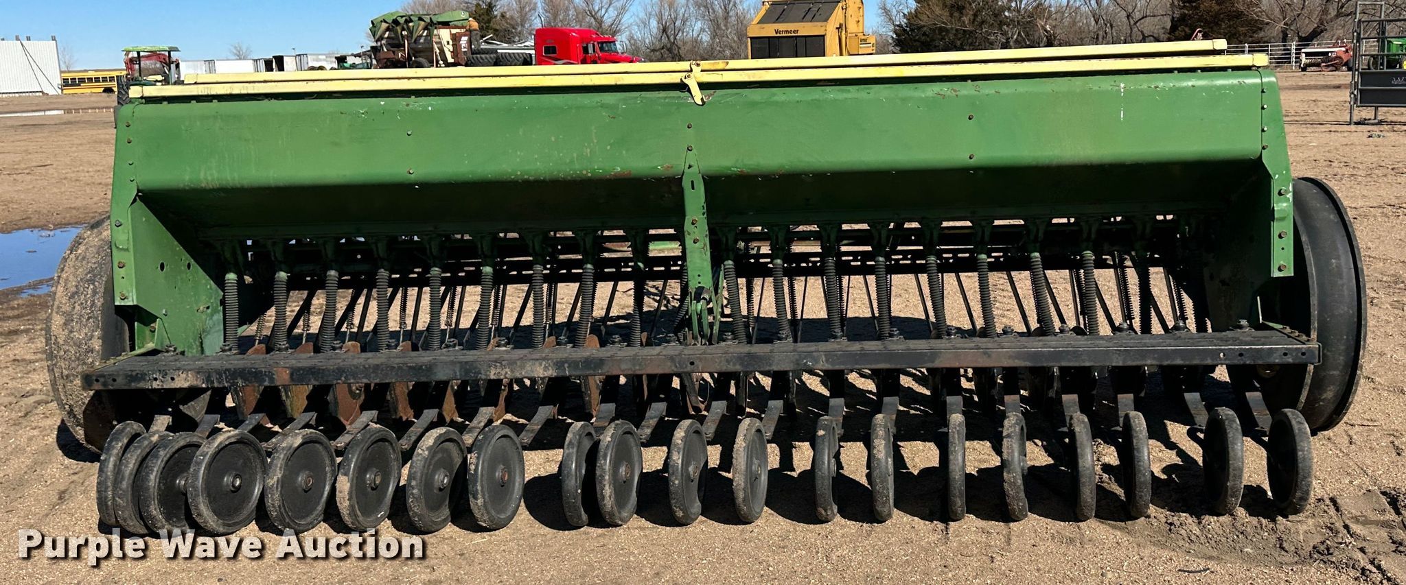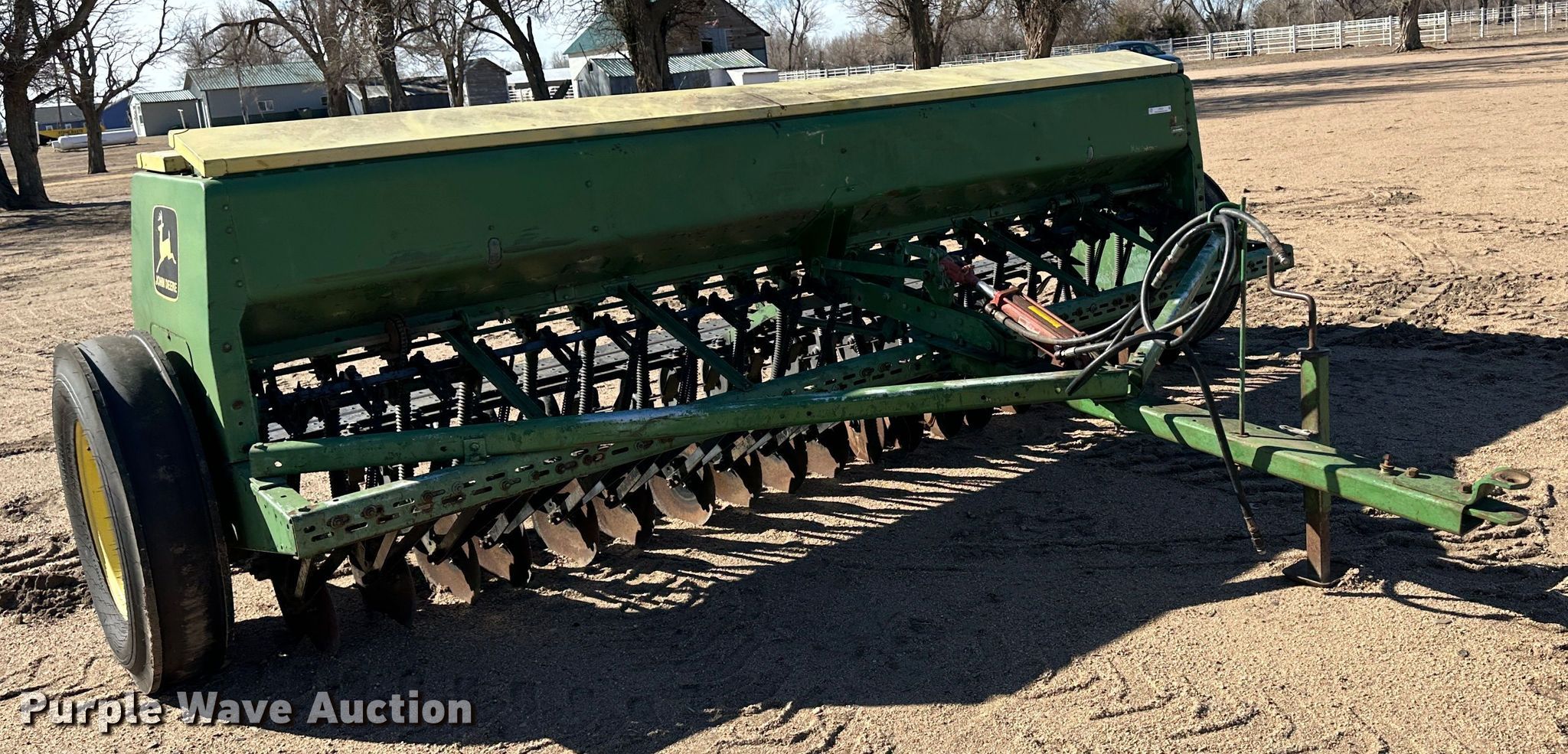 Purple Wave is selling a used Grain Drill or Seeder in Kansas. This item is a John Deere 8300 grain drill with the following: Width: 13', Row units: 20, Row spacing: 8", Serial: 041437