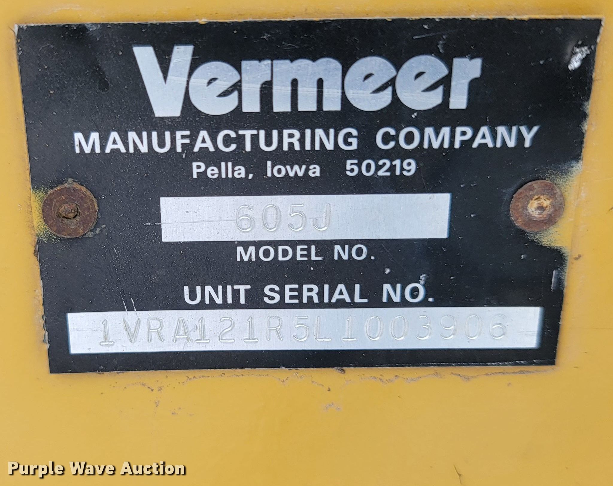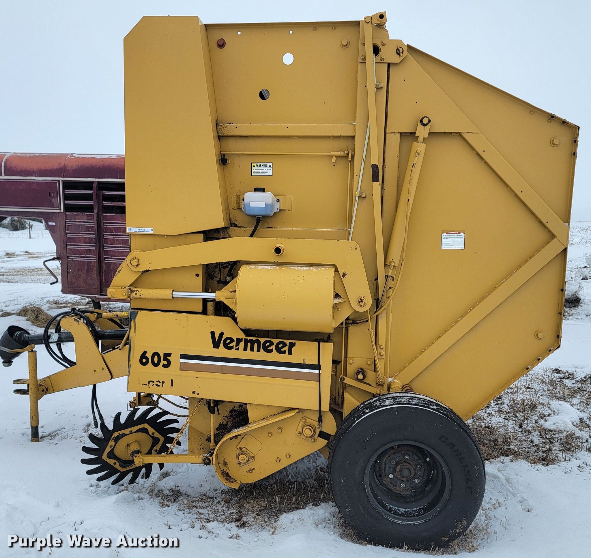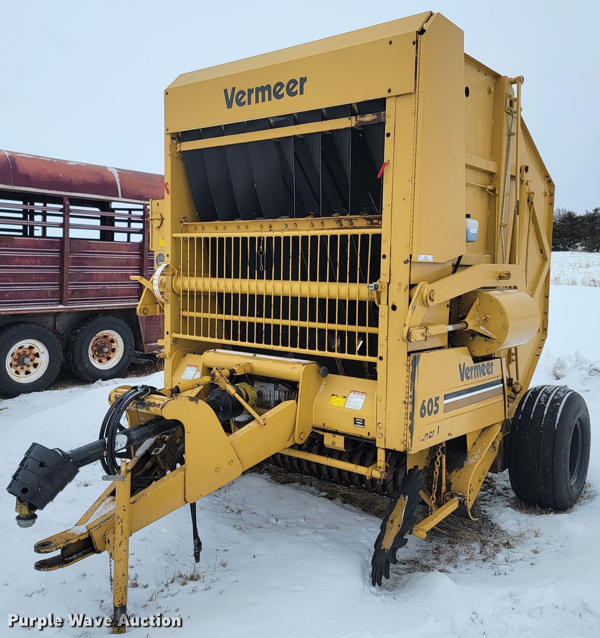 Purple Wave is selling a used Round Baler in Nebraska. This item is a 1990 Vermeer 605 Super J round baler with the following: Serial: 1VRA121R5L1003906