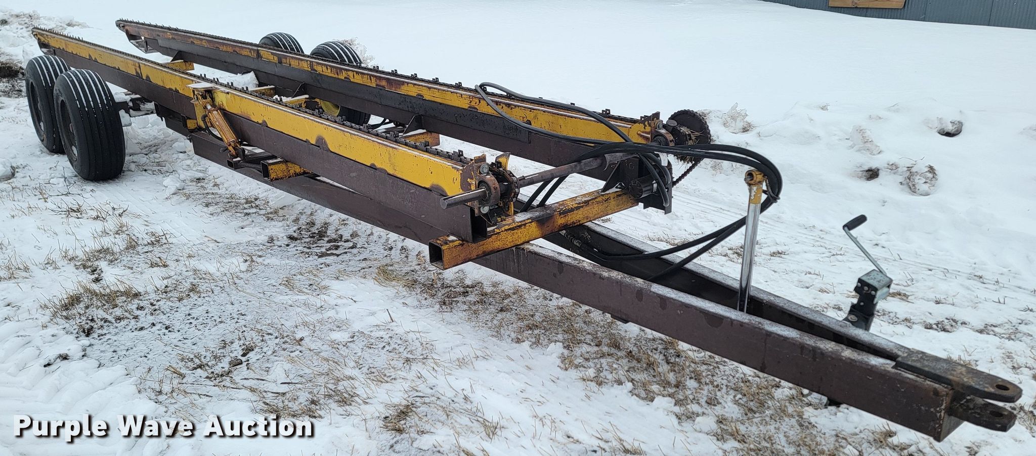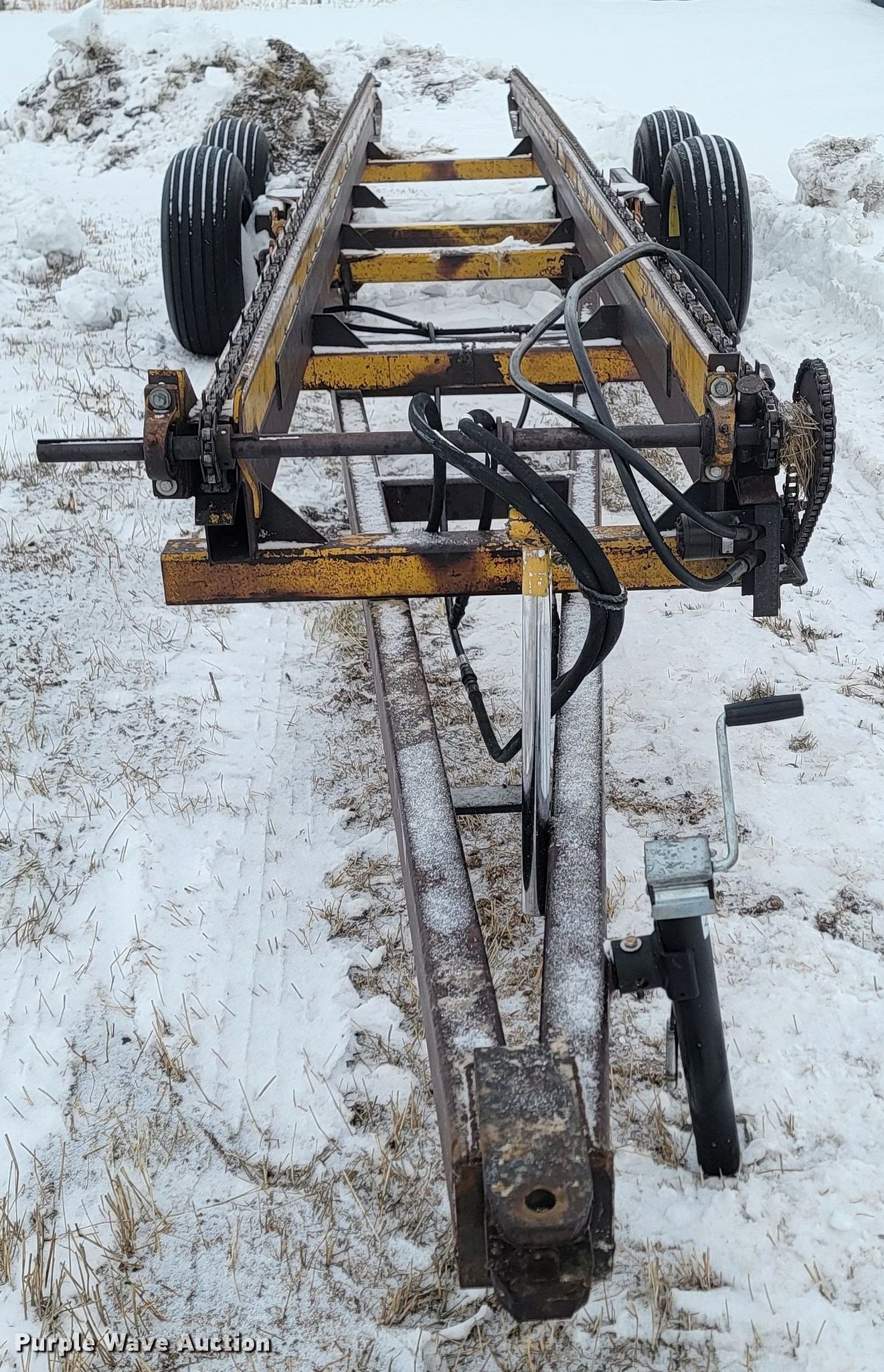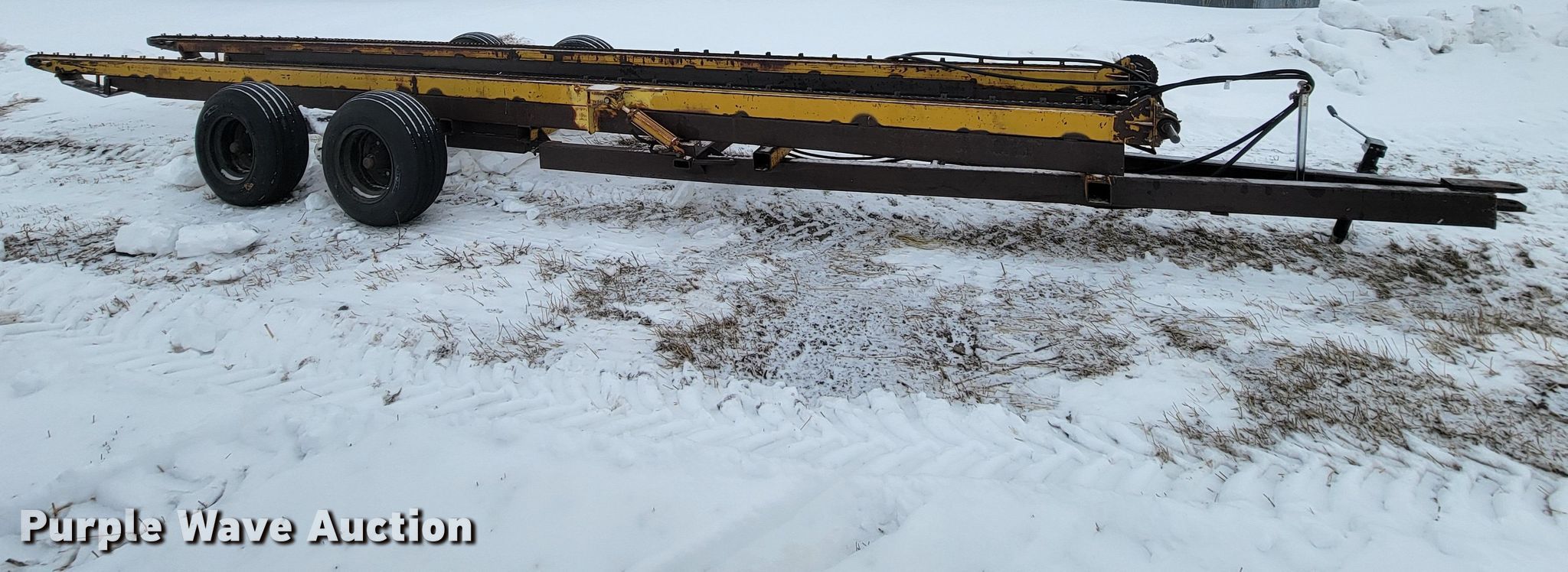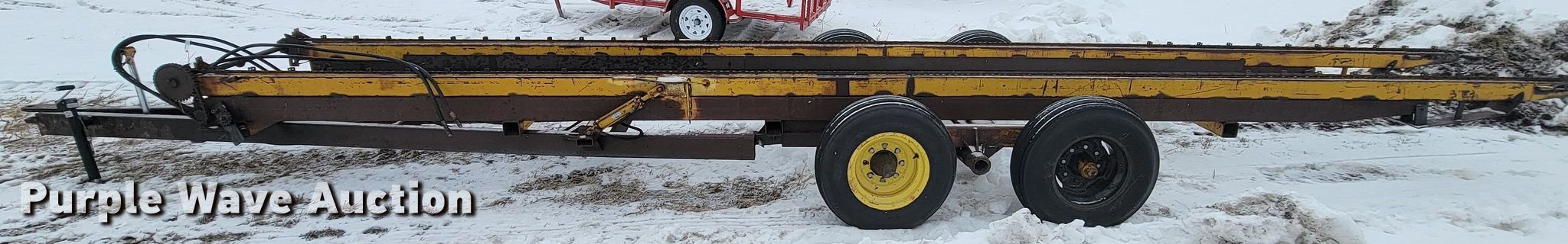 Purple Wave is selling a used Hay Handling in Nebraska. This item is a Hay bale trailer with the following: Overall: 33' L x 84" W, Deck: 28' 6" L x 84" W, Tires: 11L-16SL