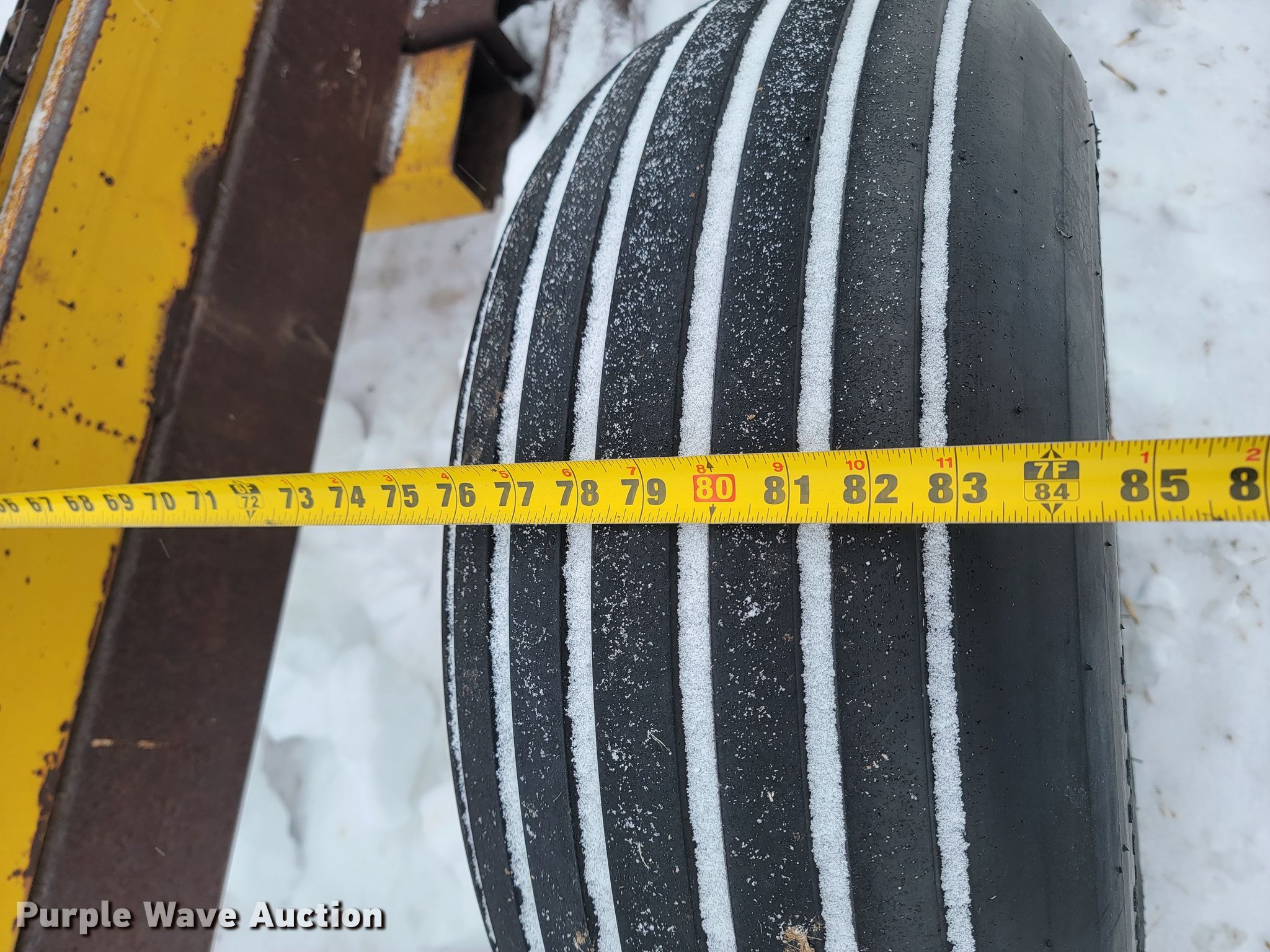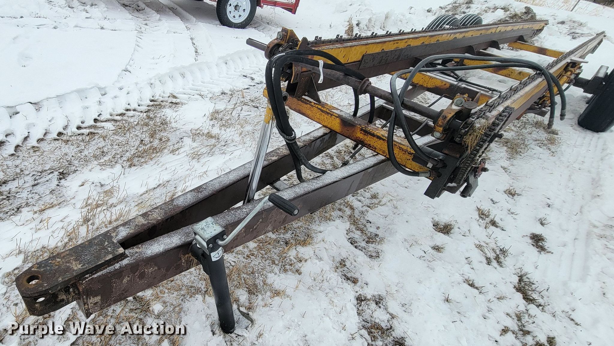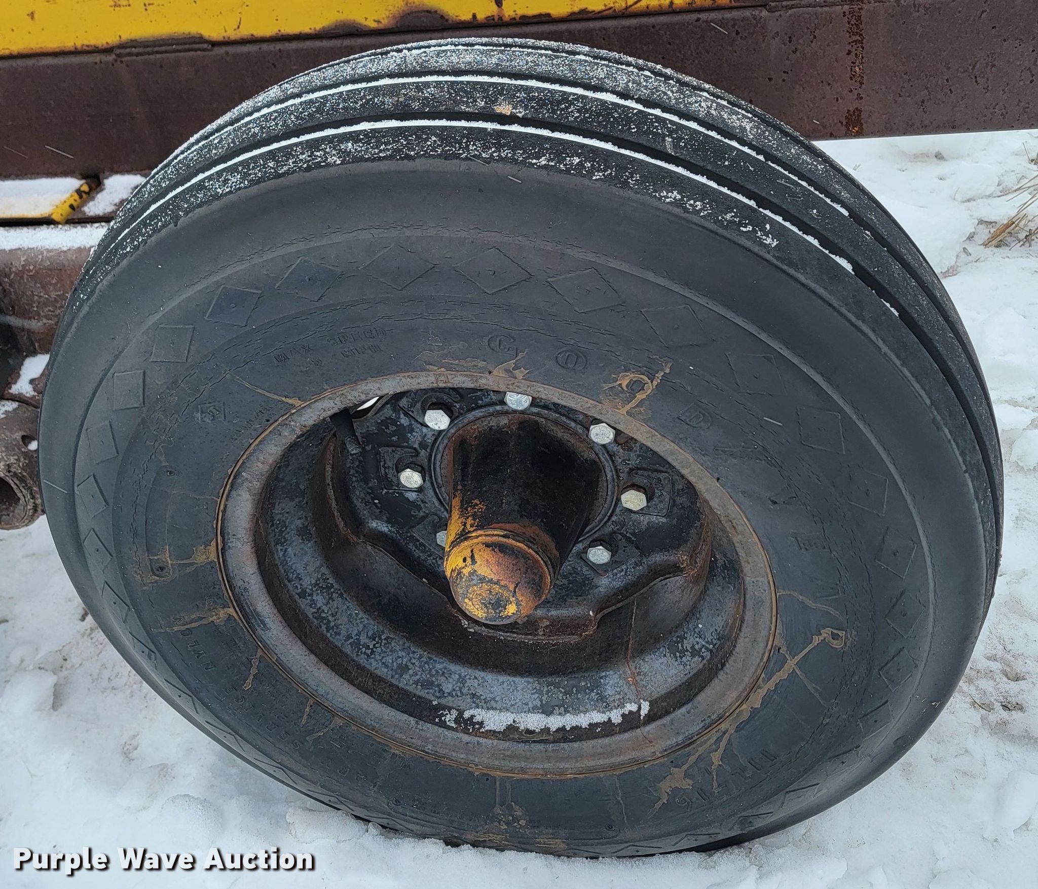 Purple Wave is selling a used Hay Handling in Nebraska. This item is a Hay bale trailer with the following: Overall: 33' L x 84" W, Deck: 28' 6" L x 84" W, Tires: 11L-16SL