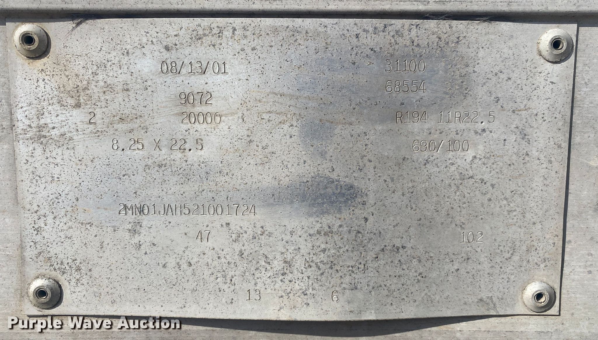 Purple Wave is selling a used Dry Van Trailer in Oklahoma. This item is a 2002 Mond Industries dry van trailer with the following: VIN: 2MN01JAH521001724, Unit #: 349