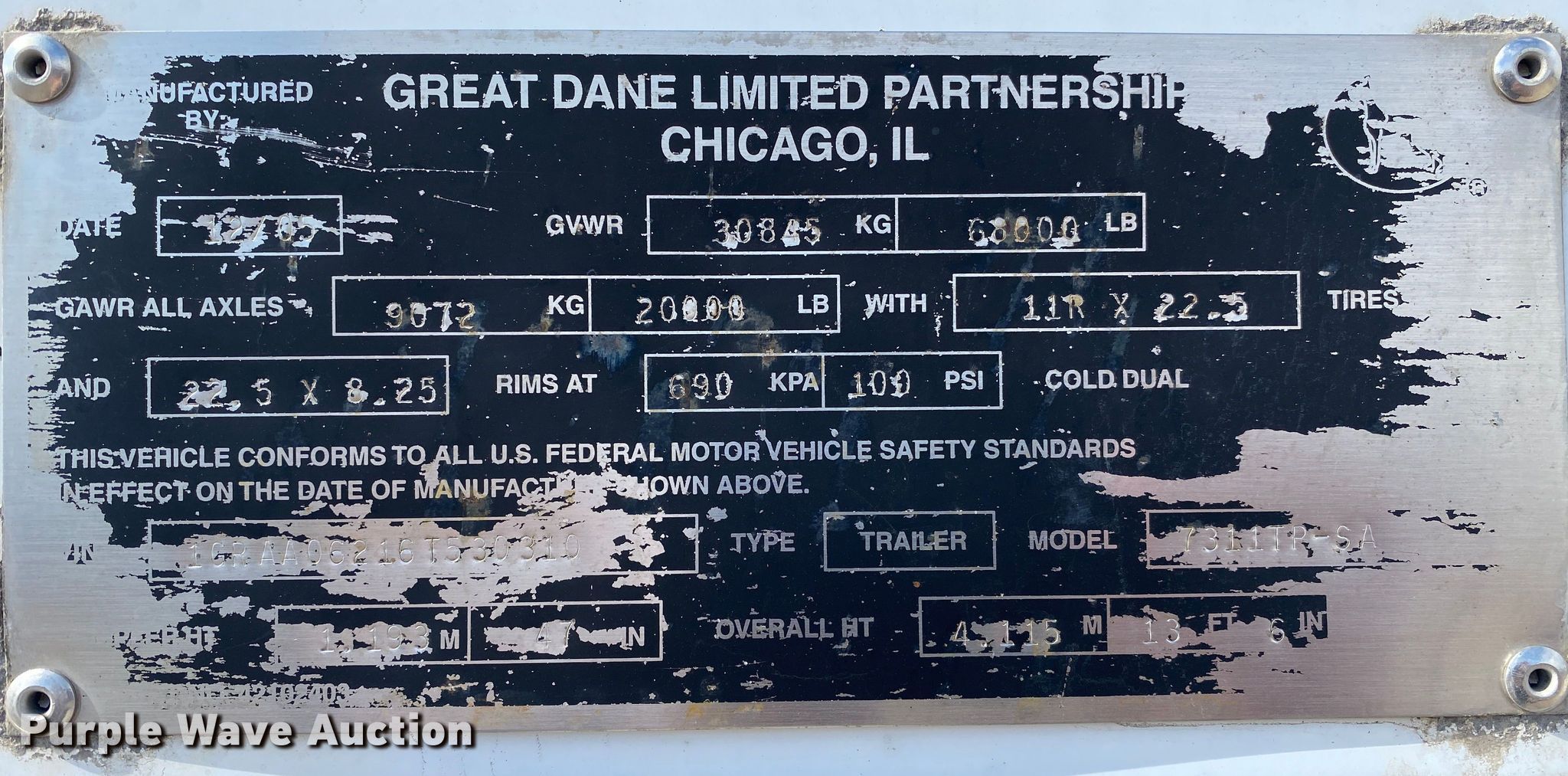 Purple Wave is selling a used Dry Van Trailer in Oklahoma. This item is a 2006 Great Dane 7311TP dry van trailer with the following: VIN: 1GRAA06216T530310, Unit #: 345