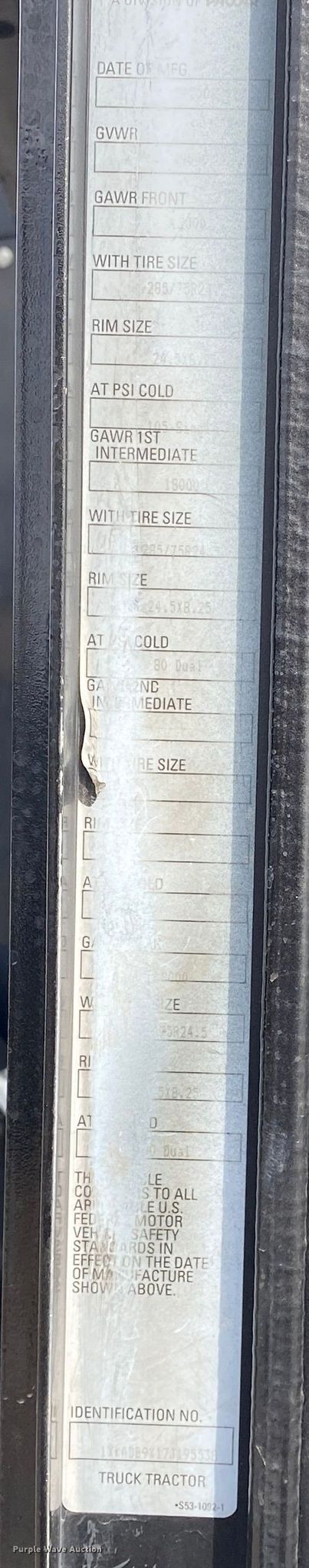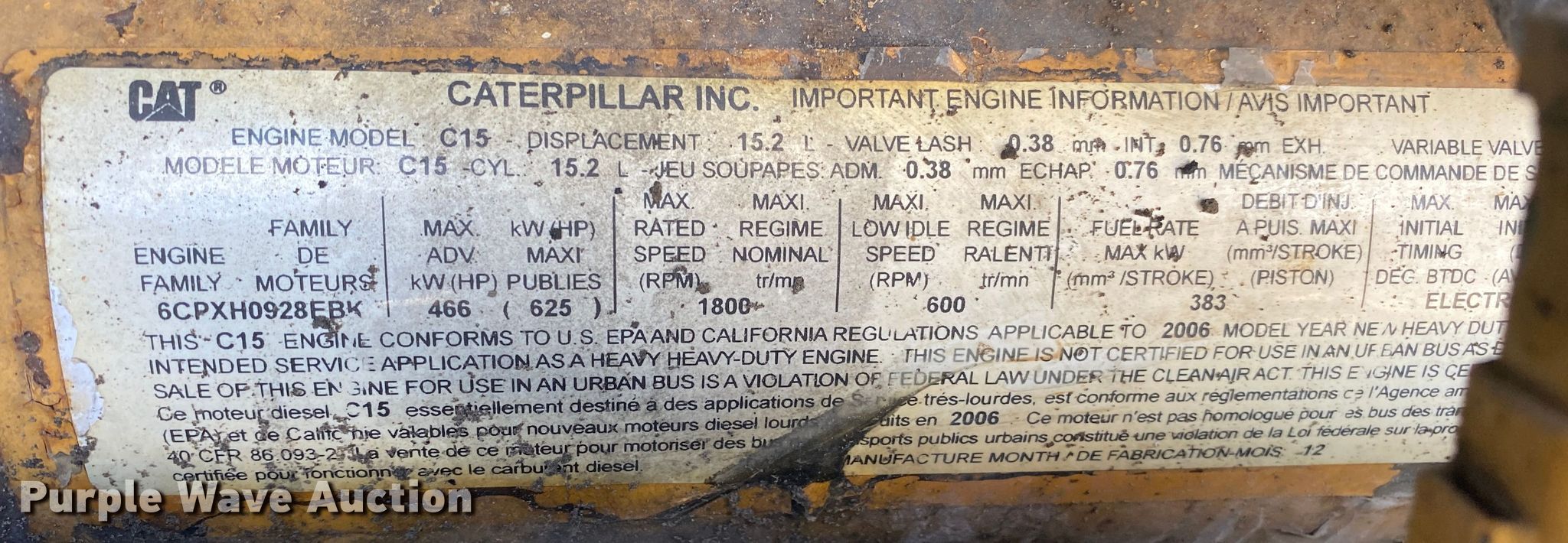 2007 Kenworth T600 semi truck. Miles: 1,268,970 on odometer, Hours: 40,459 on meter, VIN: 1XKADB9X17J195538. Engine Caterpillar C15, Serial: NXS25661, Displacement: 15.2L, Cylinders: 6, Fuel type: Diesel, HP: 466. Transmission Manual. Chassis Axles: Tandem, Differential lock: Inter-axle, Suspension: Air Dump valves, Brakes: Air. Interior AC, Heat, Power windows, Power locks, Cruise control, Air ride cab, Sleeper AeroCab, Sleeper length: 5', Beds: Double bunk, Rear climate control, Auxiliary power unit. Features Deck plate: Aluminum, Fifth wheel type: Air operated, Sliding, Fuel tank: Dual. Tires Front: 295/75R22.5, Rear: 445/50R22.5. Oklahoma title. Title distribution may be delayed up to 14 days from verification of funds. 14280 U.S. 177. Shawnee, OK 74804