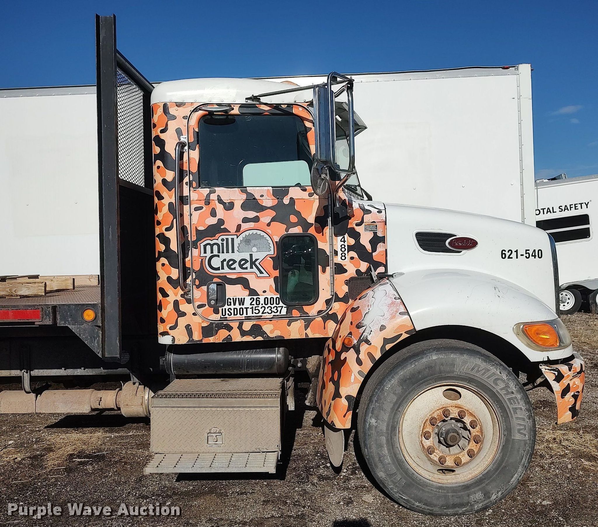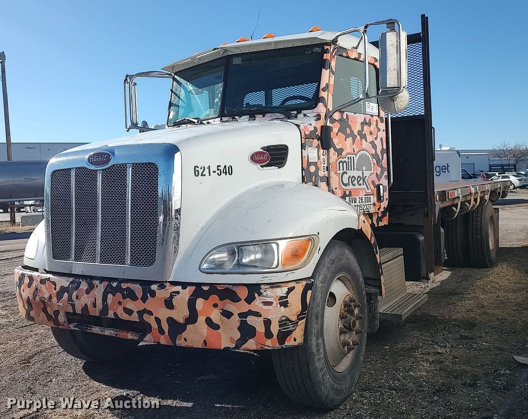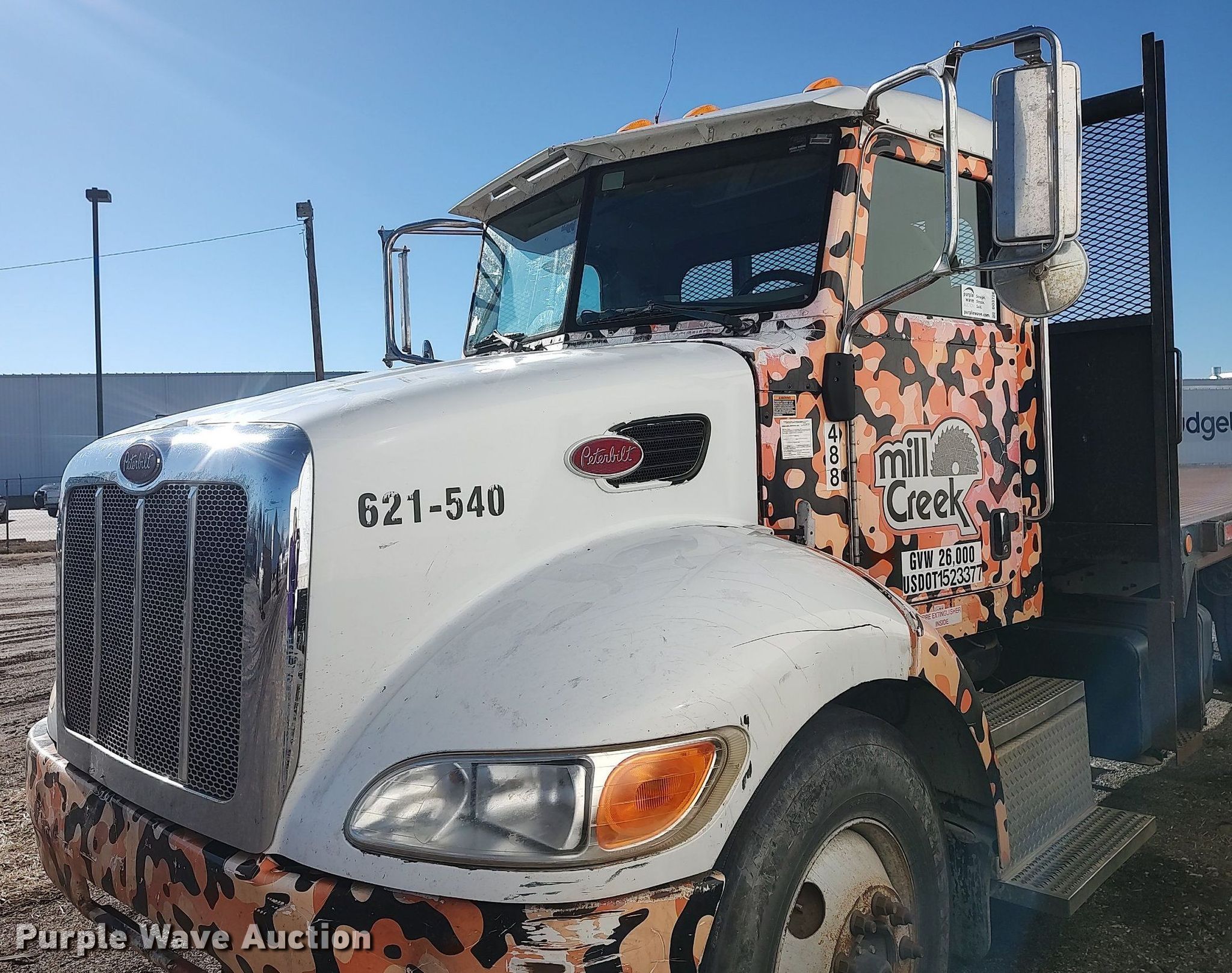 Purple Wave is selling a used Flat Bed Truck in Kansas. This item is a 2009 Peterbilt 335 dump flatbed truck with the following: Miles: 286,152 on odometer, VIN: 2NPLHM6X79M777480