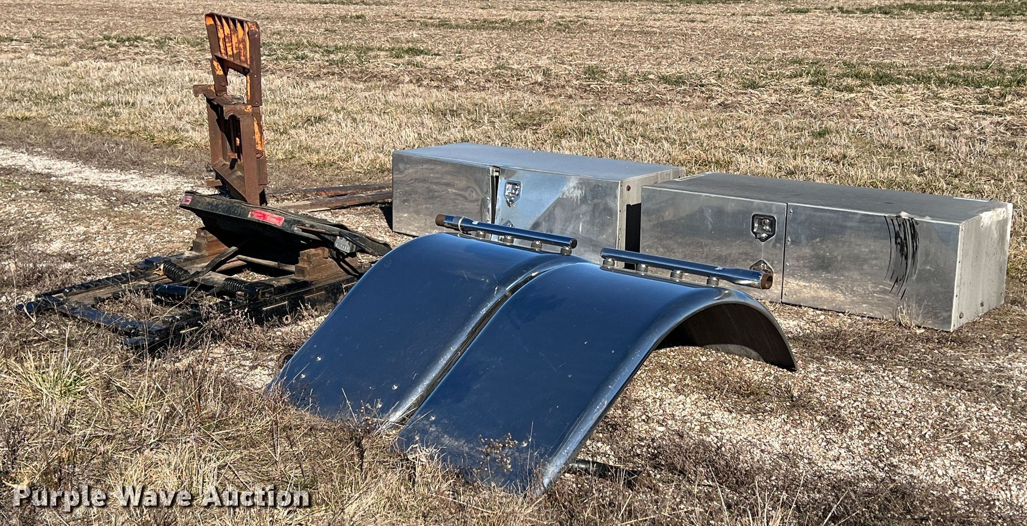 Truck parts. Peterbilt fenders, Storage boxes 5' L x 2' D x 18" H, Jost JSK37HSL fifth wheel hitch 150,000 lbs drawbar capacity, 50,000 lbs vertical capacity. 302 South 160th Street. Girard, KS 66743