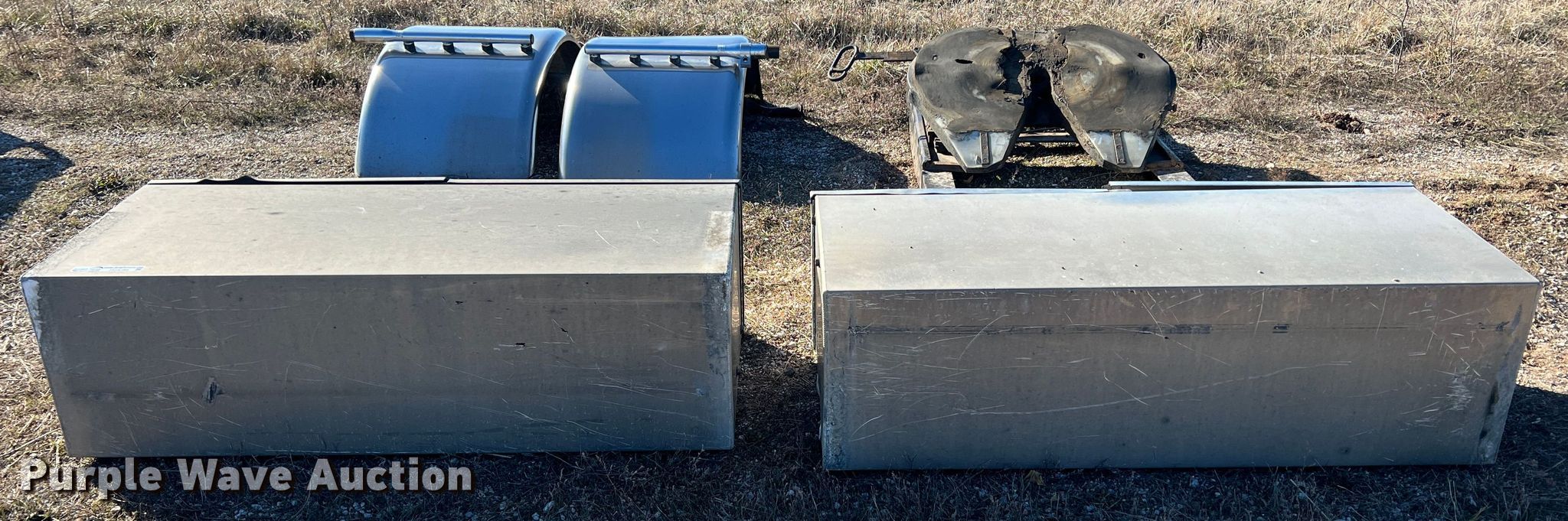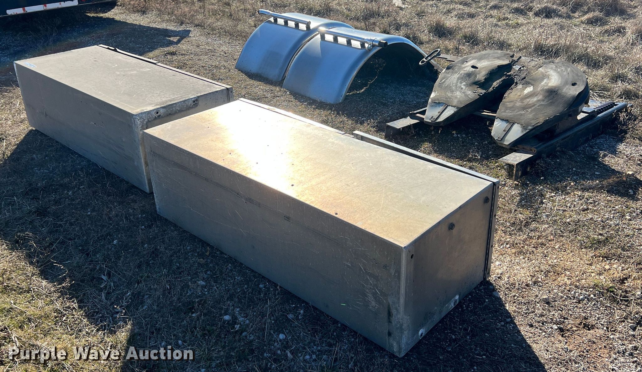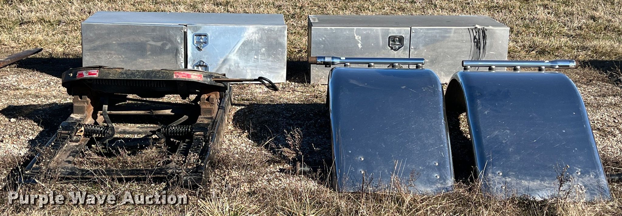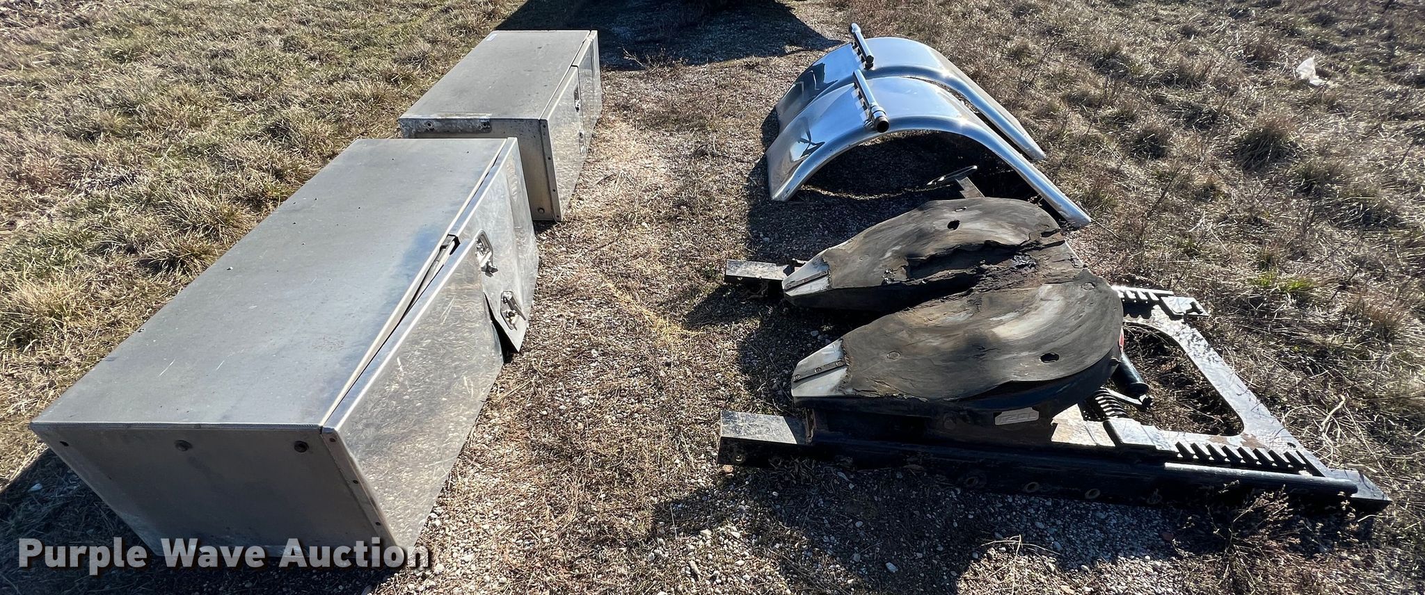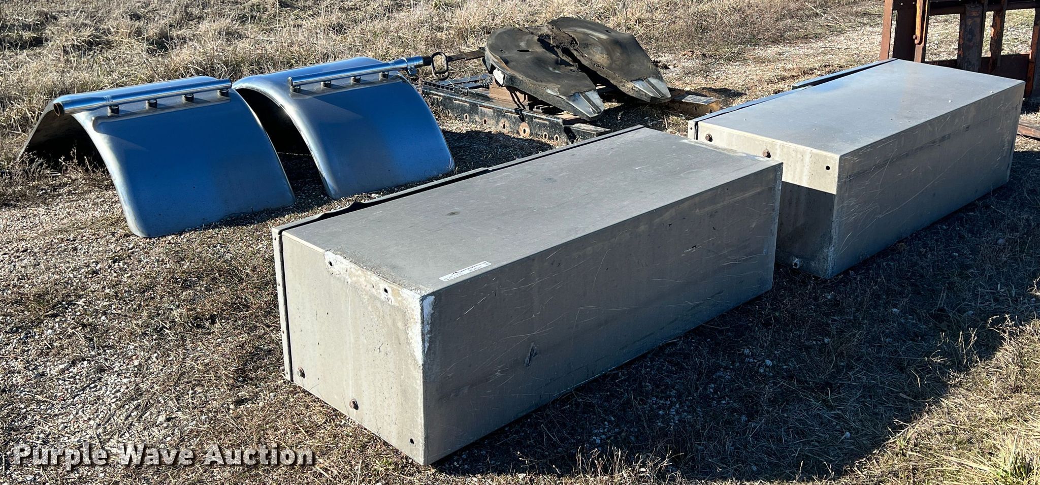 Purple Wave is selling a used Truck Part and Attach. in Kansas. This item is a Truck parts with the following: Peterbilt fenders, Storage boxes, 5' L x 2' D x 18" H, Jost JSK37HSL fifth wheel hitch, 150,000 lbs drawbar capacity, 50,000 lbs vertical capacity