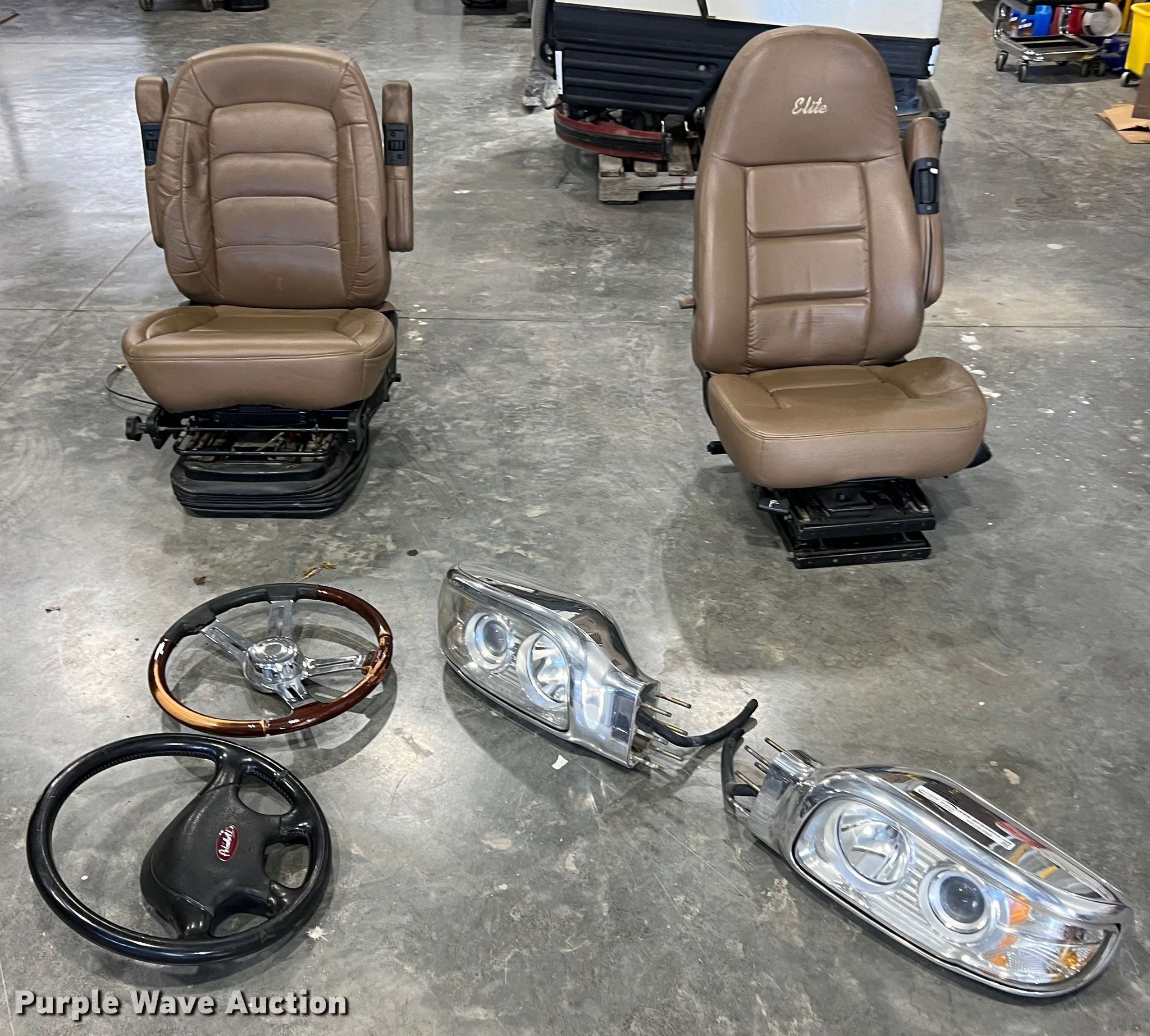 Purple Wave is selling a used Truck Part and Attach. in Kansas. This item is a Truck parts with the following: Air ride seats, Peterbilt headlights, Steering wheels