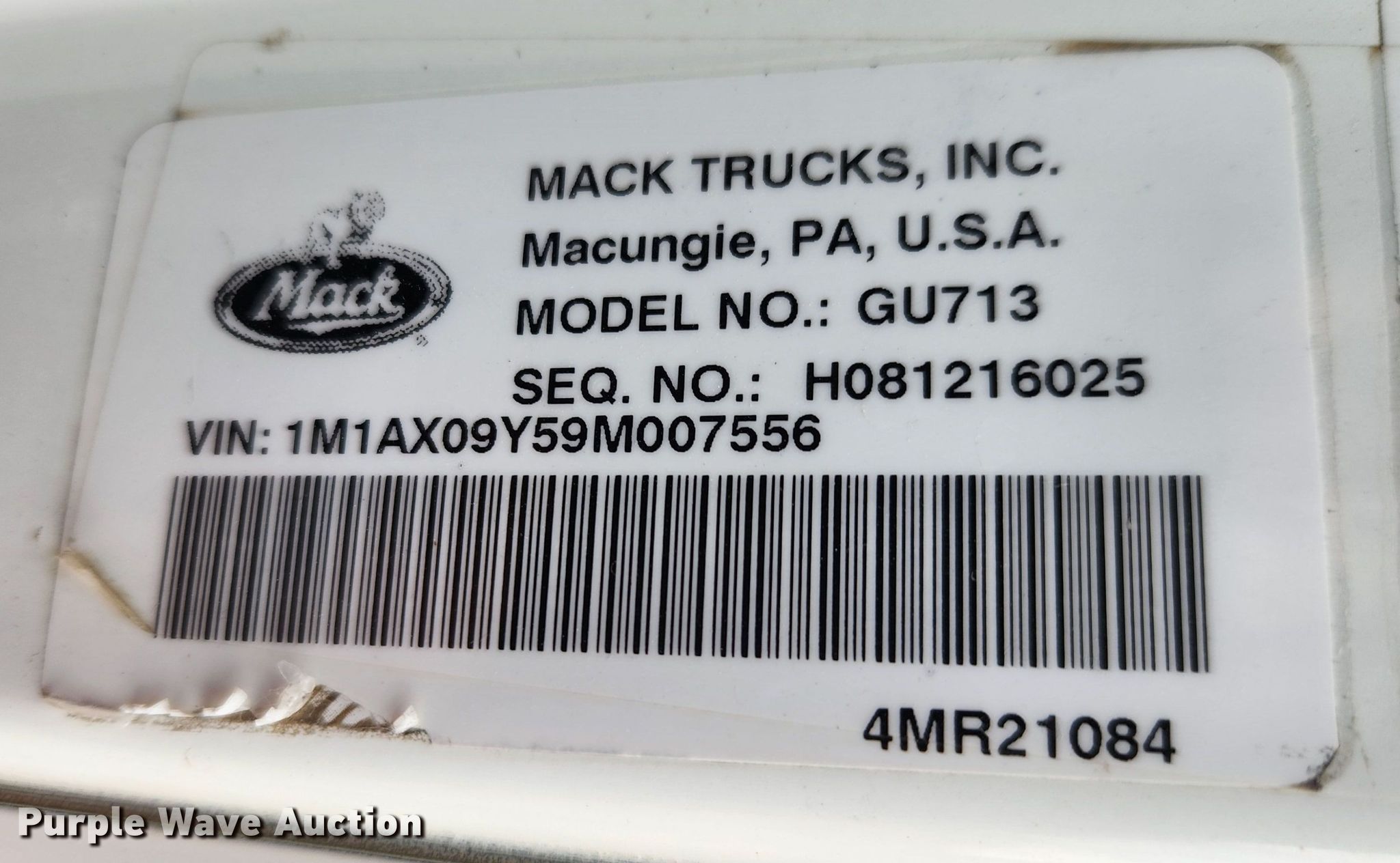 Take a look at this used 2009 Mack GU713 semi truck being sold on March 9th, 2023 in the SOLD! March 09 Truck and Trailer Auction made by Mack. Take a look at all of the item information below or take a look at similar auctions for Trucks.