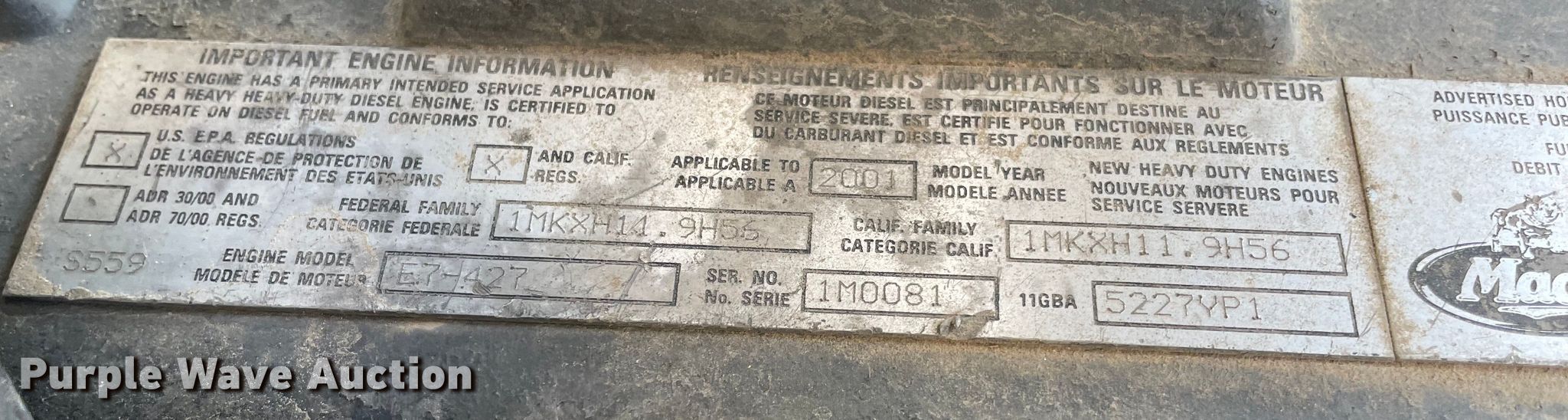 Purple Wave is selling a used Truck Tractor in Oklahoma. This item is a 2007 Mack CHN613 semi truck with the following: Miles: 710,207 on odometer, Hours: 22,664 on meter, VIN: 1M1AJ07Y87N011953