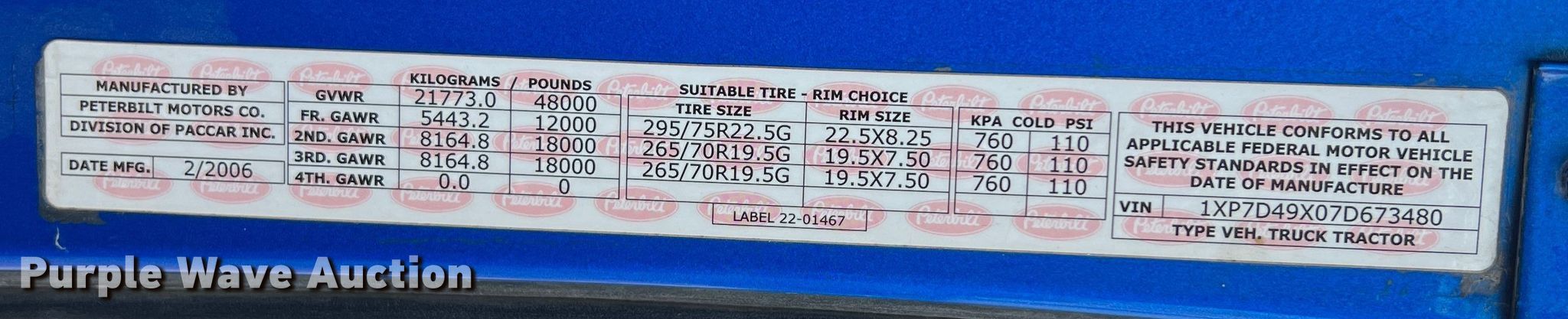 - VIN: 1XP7D49X07D673480