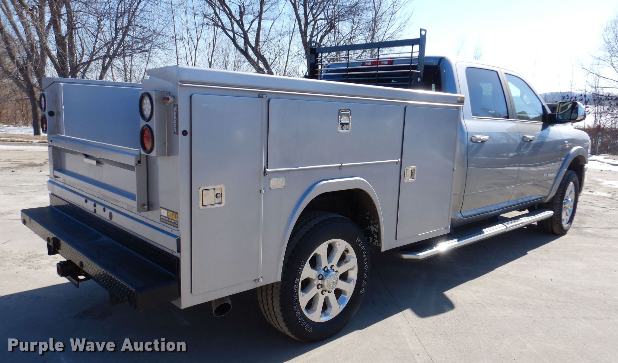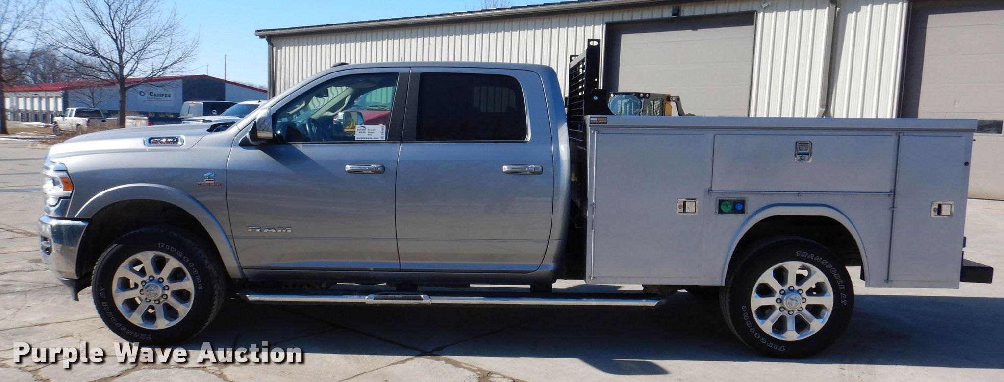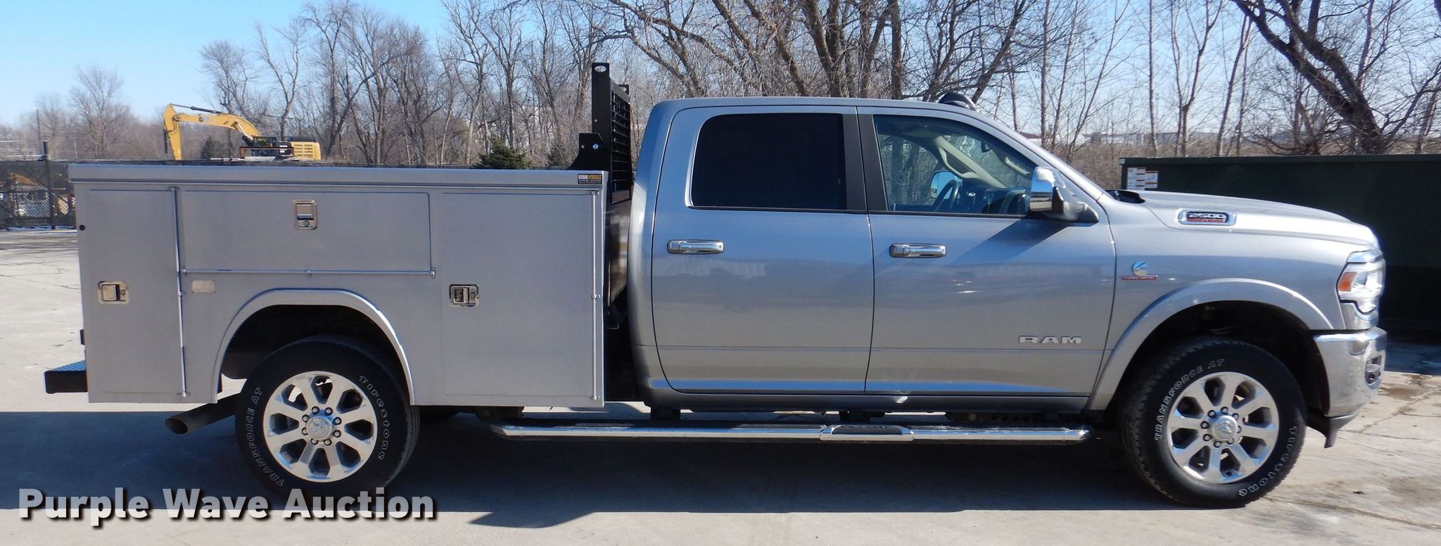 2022 Dodge Ram 2500 Laramie pickup truck. Miles: 25,302 on odometer, Miles or hours may vary, unit still in use, VIN: 3C6UR5KL0NG155167. Engine Displacement: 6.7L L6 OHV, Cylinders: 6, Fuel type: Diesel. Transmission Automatic, Four wheel drive. Interior AC, Heat, Seat: Heated, Cooled, Power driver, Power passenger, Heated mirrors, Power windows, Power locks, Cruise control, Backup camera. Features Utility bed RKI T5780, 8' L x 81" W. Tires Size: LT285/60R20. Iowa title. Title distribution may be delayed up to 14 days from verification of funds. Carter and Associates Retirement - Open Inspection March 4th and March 8th. 395 Westcor Drive. Coralville, IA 52241