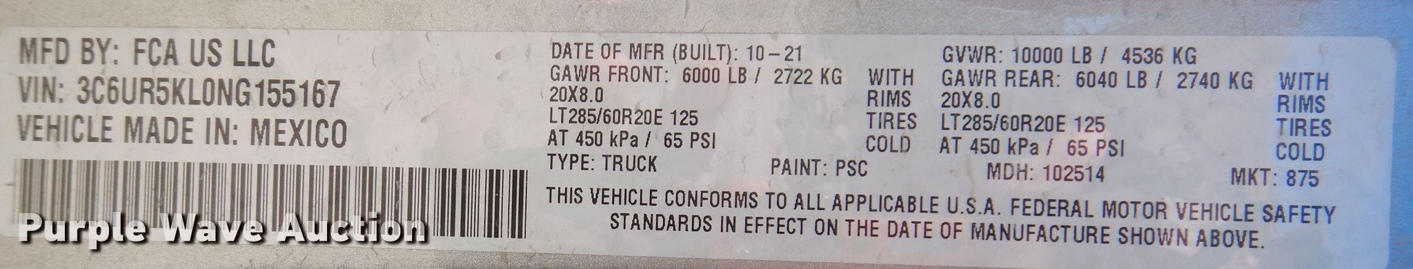 Purple Wave is selling a used 3/4 or 1 Ton Pickup or Van in Iowa. This item is a 2022 Dodge Ram 2500 Laramie pickup truck with the following: Miles: 25,302 on odometer, Miles or hours may vary, unit still in use, VIN: 3C6UR5KL0NG155167
