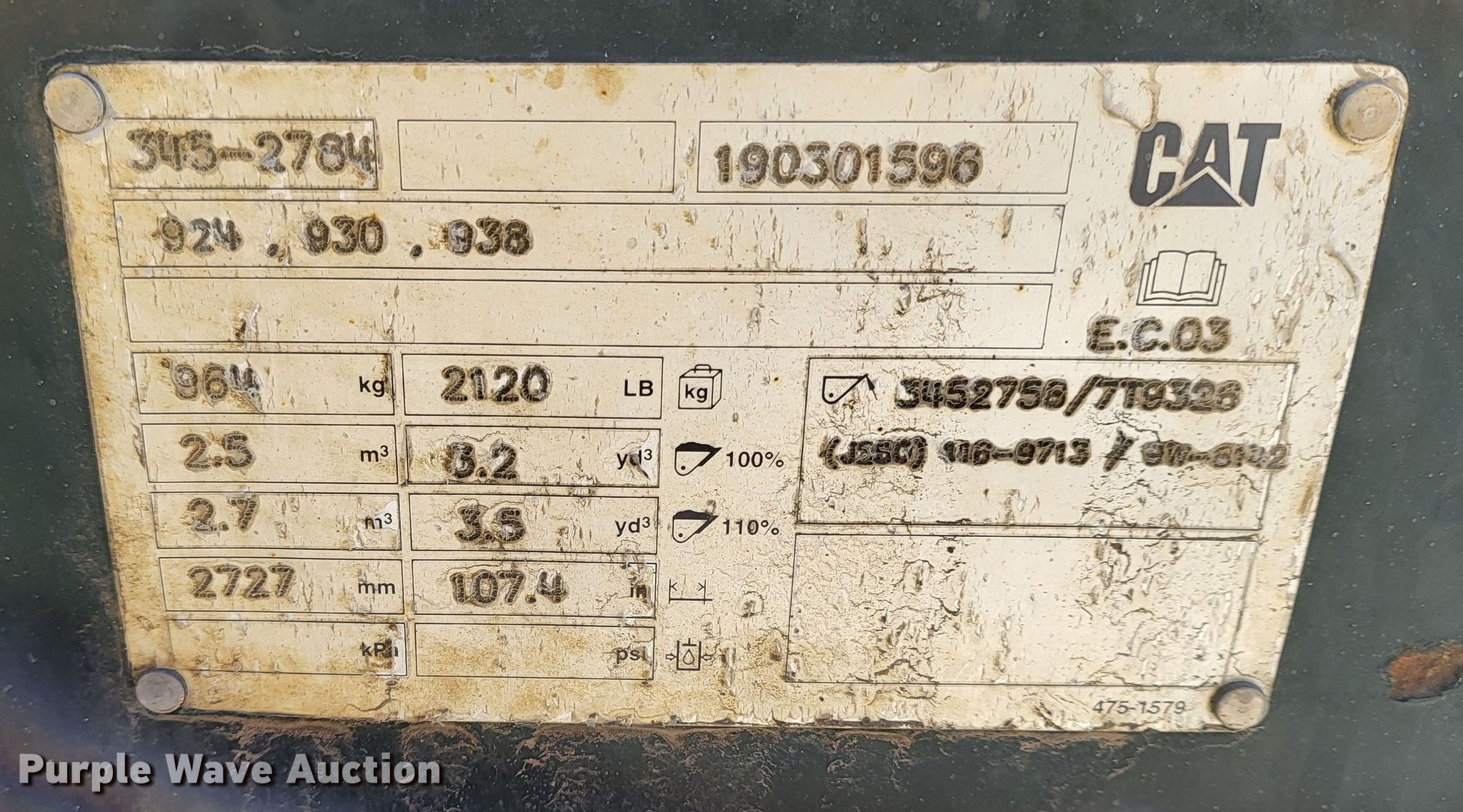 2019 Caterpillar 938M wheel loader. Hours: 1,168 on meter, Miles or hours may vary, unit still in use, Serial: CAT0938MHJ3R08004. Engine Caterpillar C7.1, Displacement: 7.01L, Cylinders: 6, Fuel type: Diesel. Transmission Powershift, 4F - 4R. Operators station Enclosed cab, AC, Heat, Bucket controls: Joystick, Ride control. Features Auxiliary hydraulics: Front, Quick coupler: Hydraulic, Bucket Caterpillar, Capacity: 3.5 cu.yd., Width: 108", Cutting edge: Bolt-on, Forks Caterpillar, Length: 59". Tires Size: 20.5R25. Notes Possible air ride seat issues. Item will be utilized during the removal process. Item will be available for load-out beginning March 23rd. Carter and Associates Retirement - Open Inspection March 4th and March 8th. 395 Westcor Drive. Coralville, IA 52241