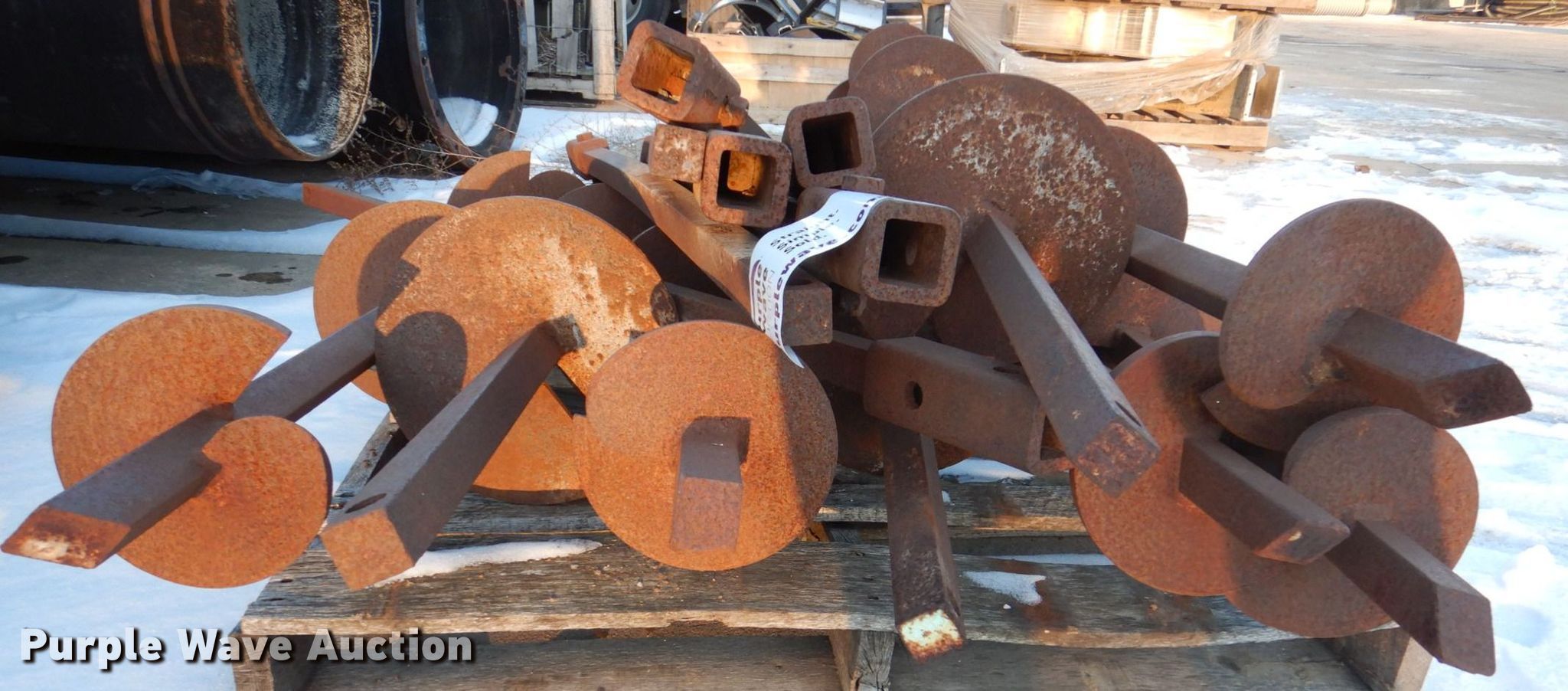 Purple Wave is selling a used Tools in Iowa. This item is a (8) 7' steel anchors with the following: 12" diameter top ring, 5.5' extensions