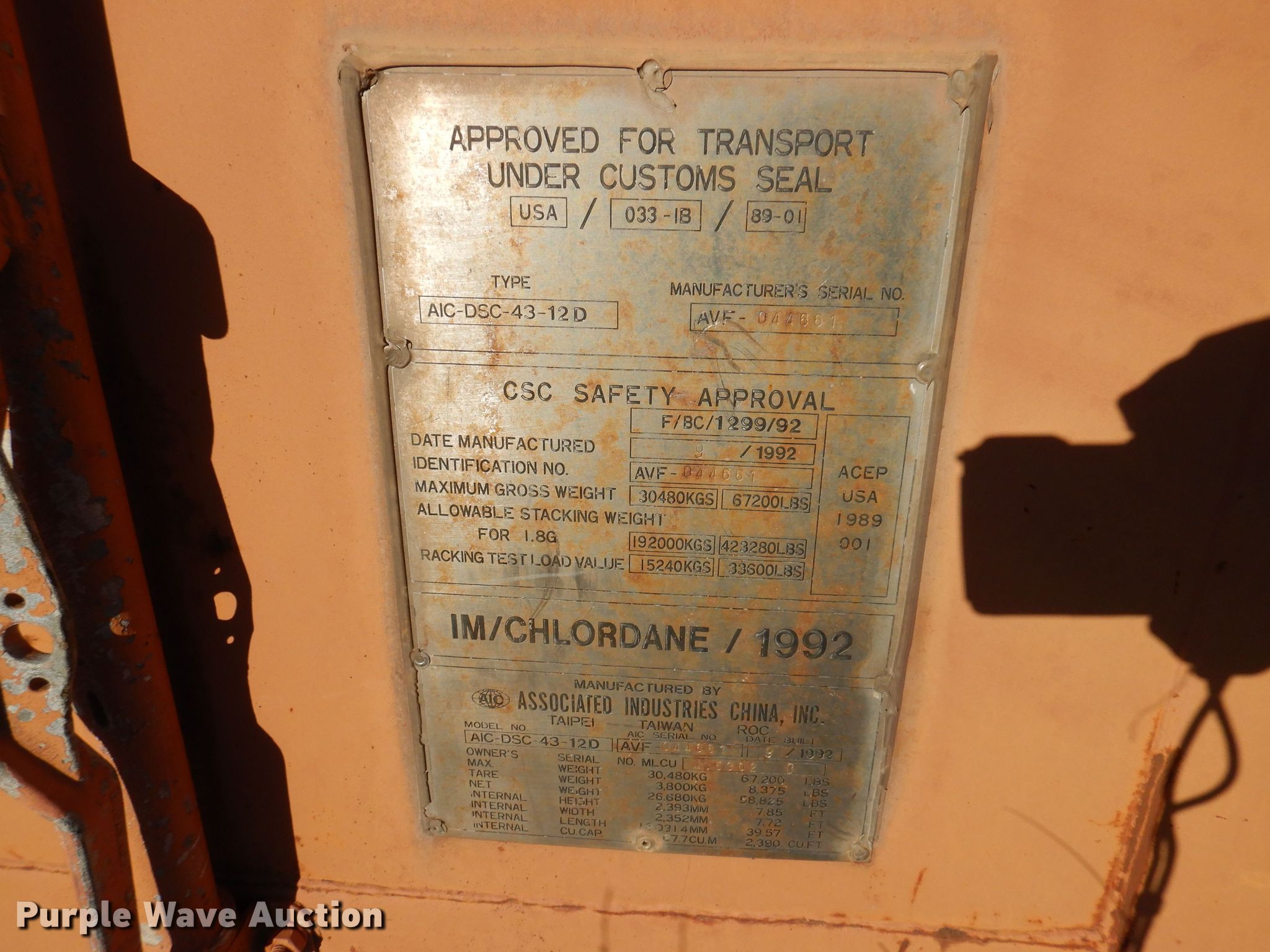 1992 Associated Industries AIC-DSC 43-12D storage container has sold in Coralville, Iowa for $4950. Item DK5063 sold on March 9th, 2023.