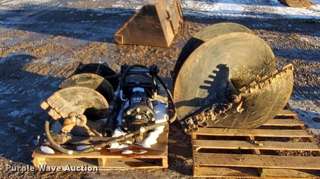 Caterpillar A26B auger. (2) bits 36" W x 48" D, 18" W x 48" D, (3) extensions 12", 24" , 34". Carter and Associates Retirement - Open Inspection March 4th and March 8th. 395 Westcor Drive. Coralville, IA 52241
