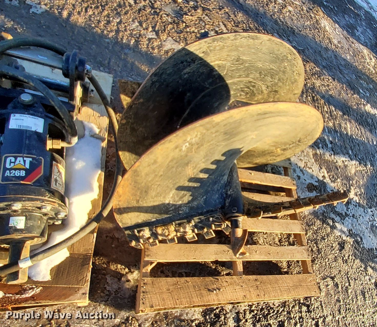 Purple Wave is selling a used Excavator Attach. in Iowa. This item is a Caterpillar A26B auger with the following: (2) bits, 36" W x 48" D, 18" W x 48" D, (3) extensions, 12", 24", 34"