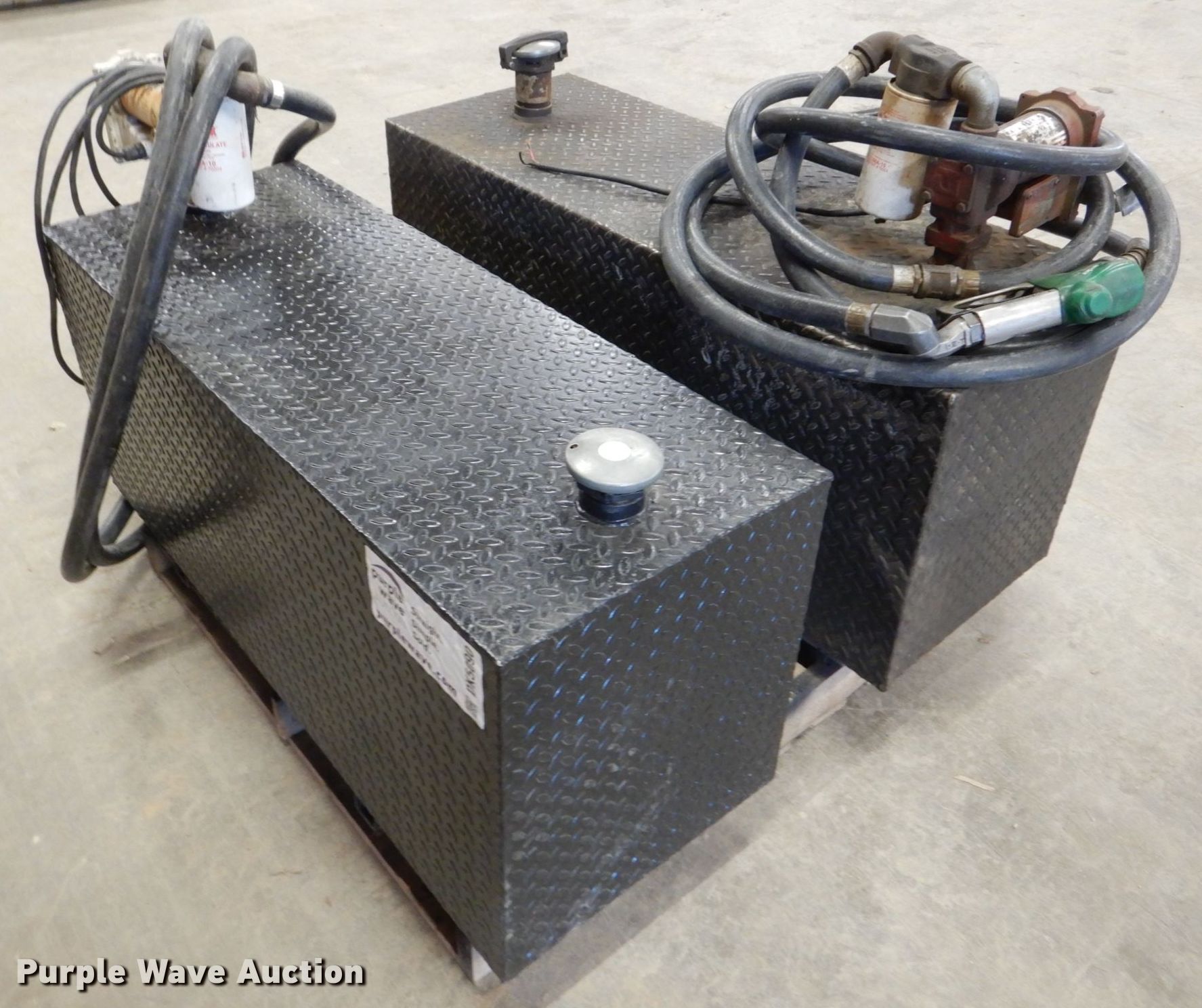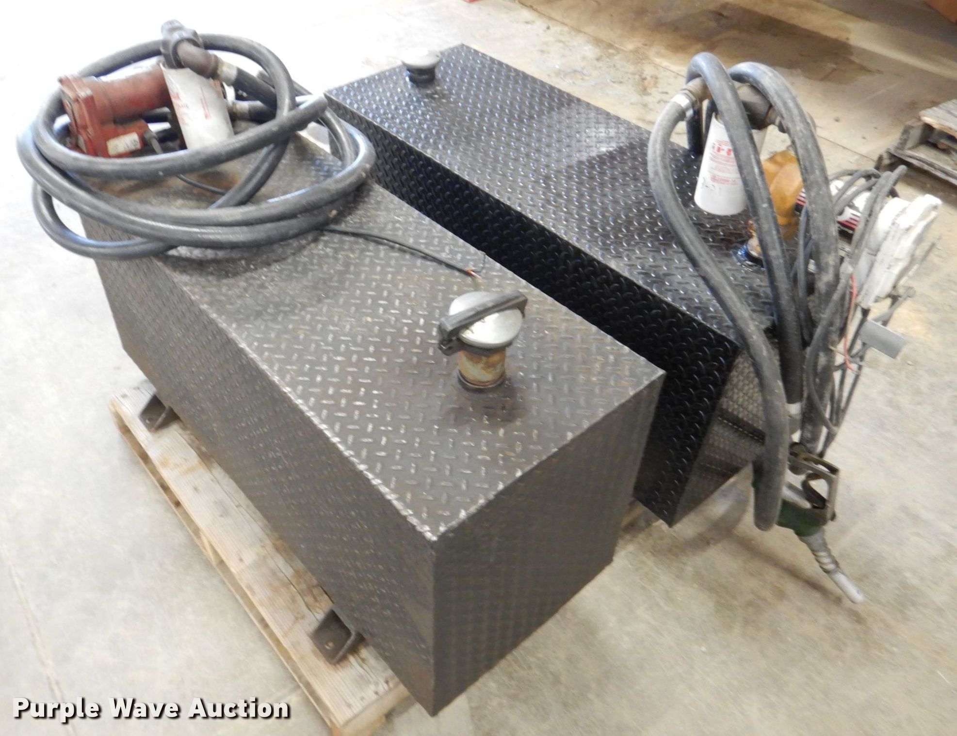 (2) auxiliary fuel tanks. 4' L x 21" W x18" H, Fill-Rite pump 20 GPM, Diesel. Carter and Associates Retirement - Open Inspection March 4th and March 8th. 395 Westcor Drive. Coralville, IA 52241