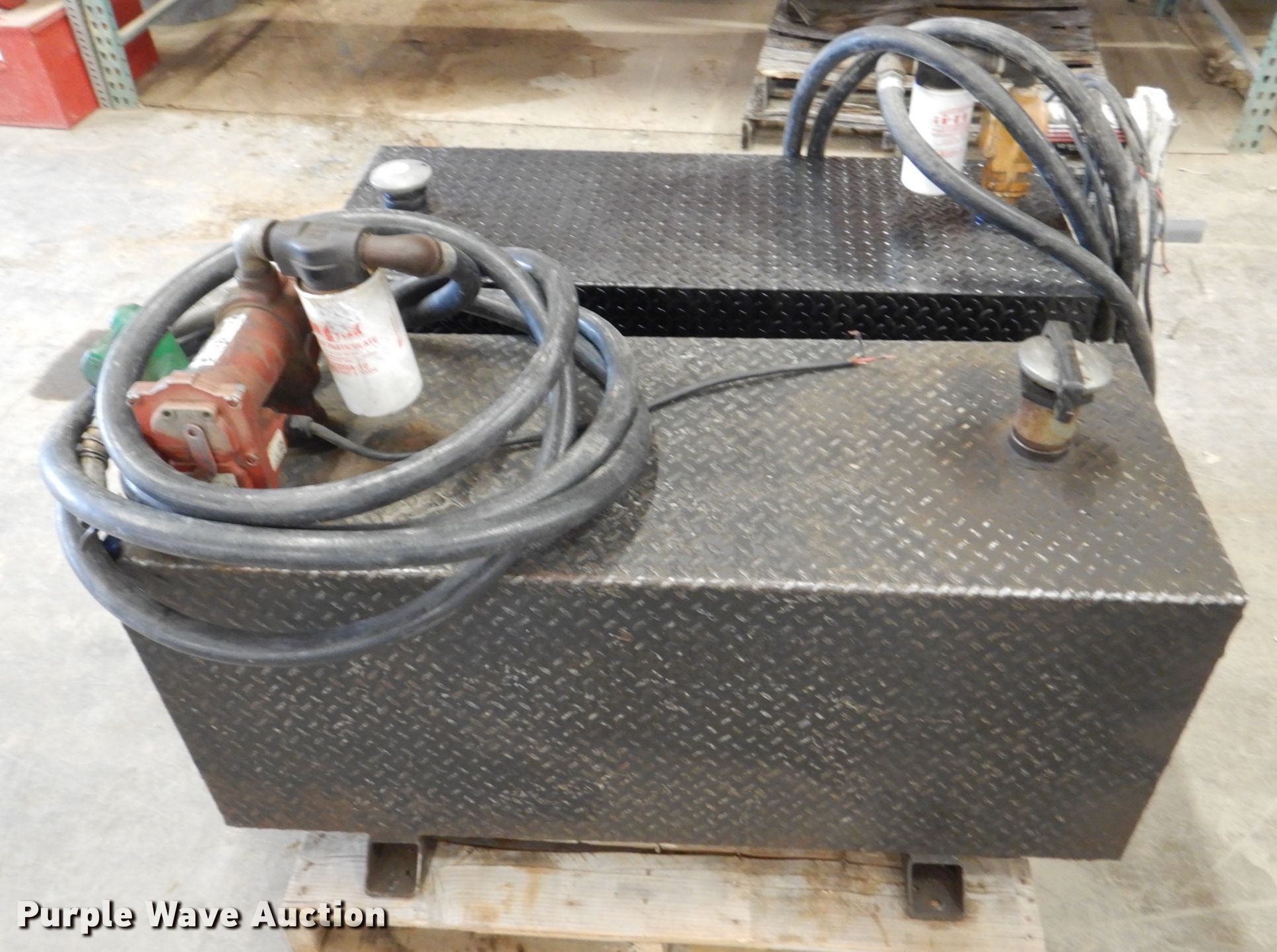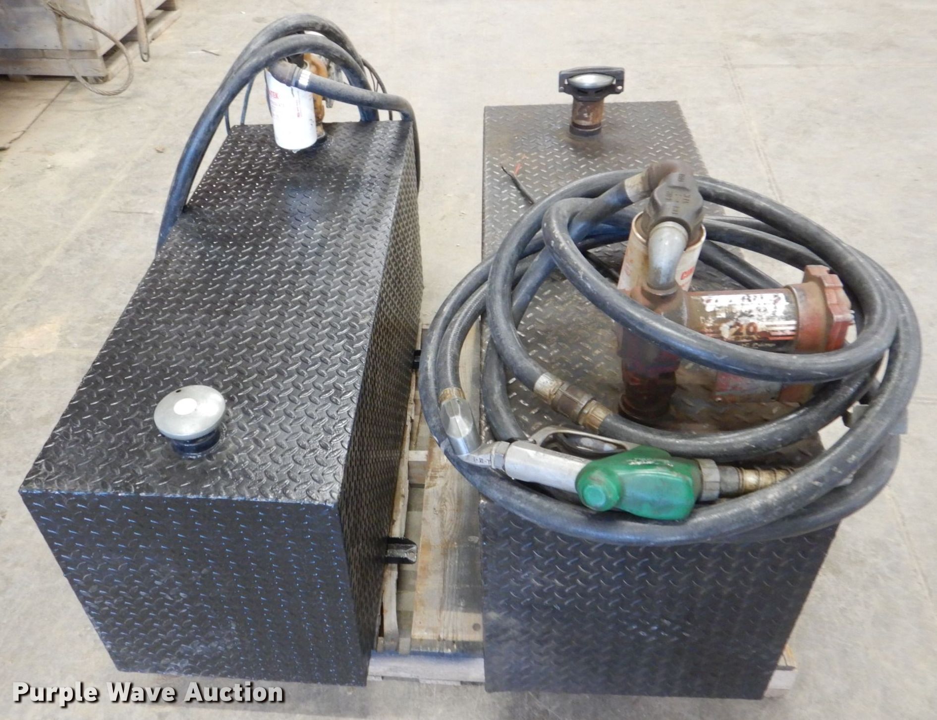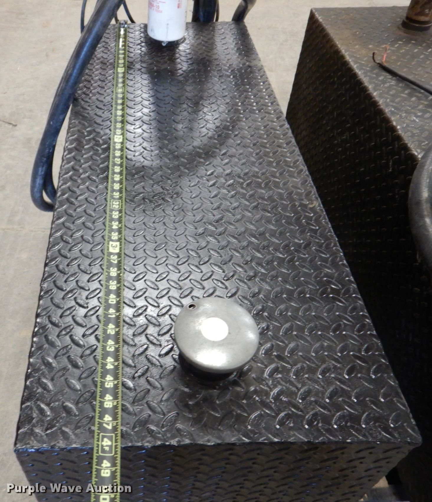 Purple Wave is selling a used Fuel and Lube in Iowa. This item is a (2) auxiliary fuel tanks with the following: 4' L x 21" W x18" H, Fill-Rite pump, 20 GPM, Diesel