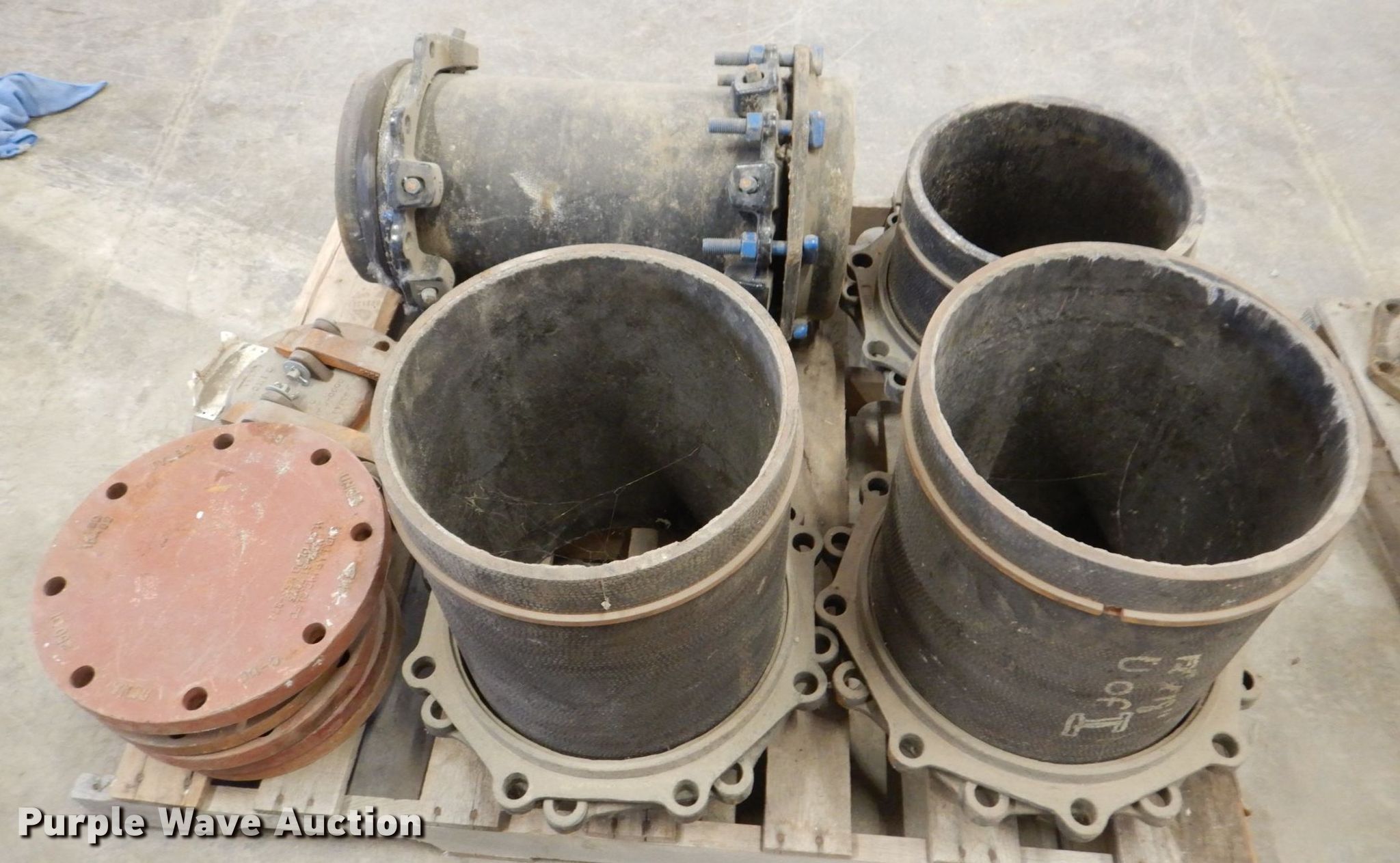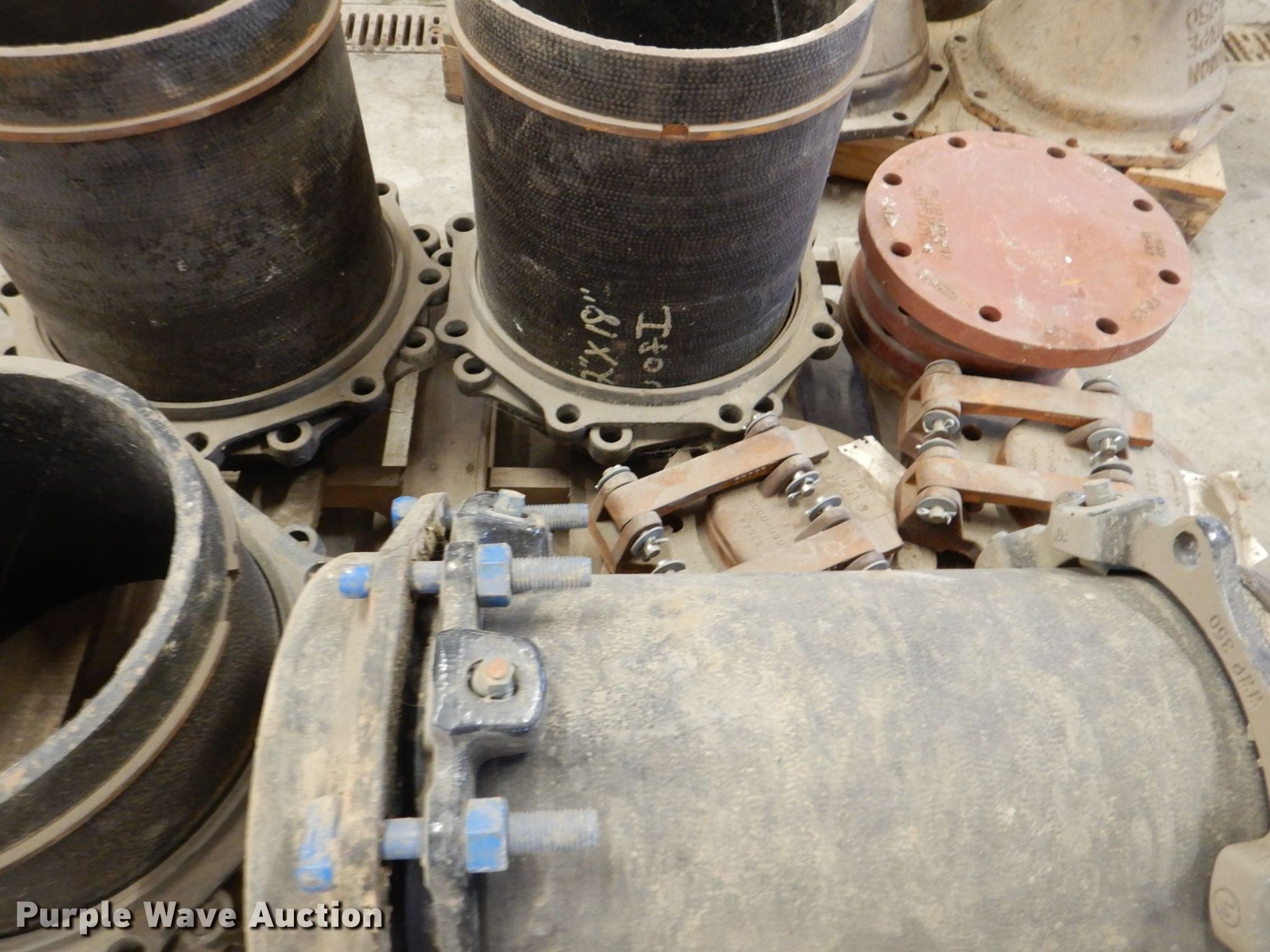 Purple Wave is selling a used Pipe in Iowa. This item is a Tyler pipe fittings with the following: Couplers, Flange, Block plates, 5", 6", 10", Reducers, 12" x 4", 12 x 6", 12" x 8", Caps, 10", 14", Extension adapters, 4" x 12", 12" x 18", Drisco flange fittings