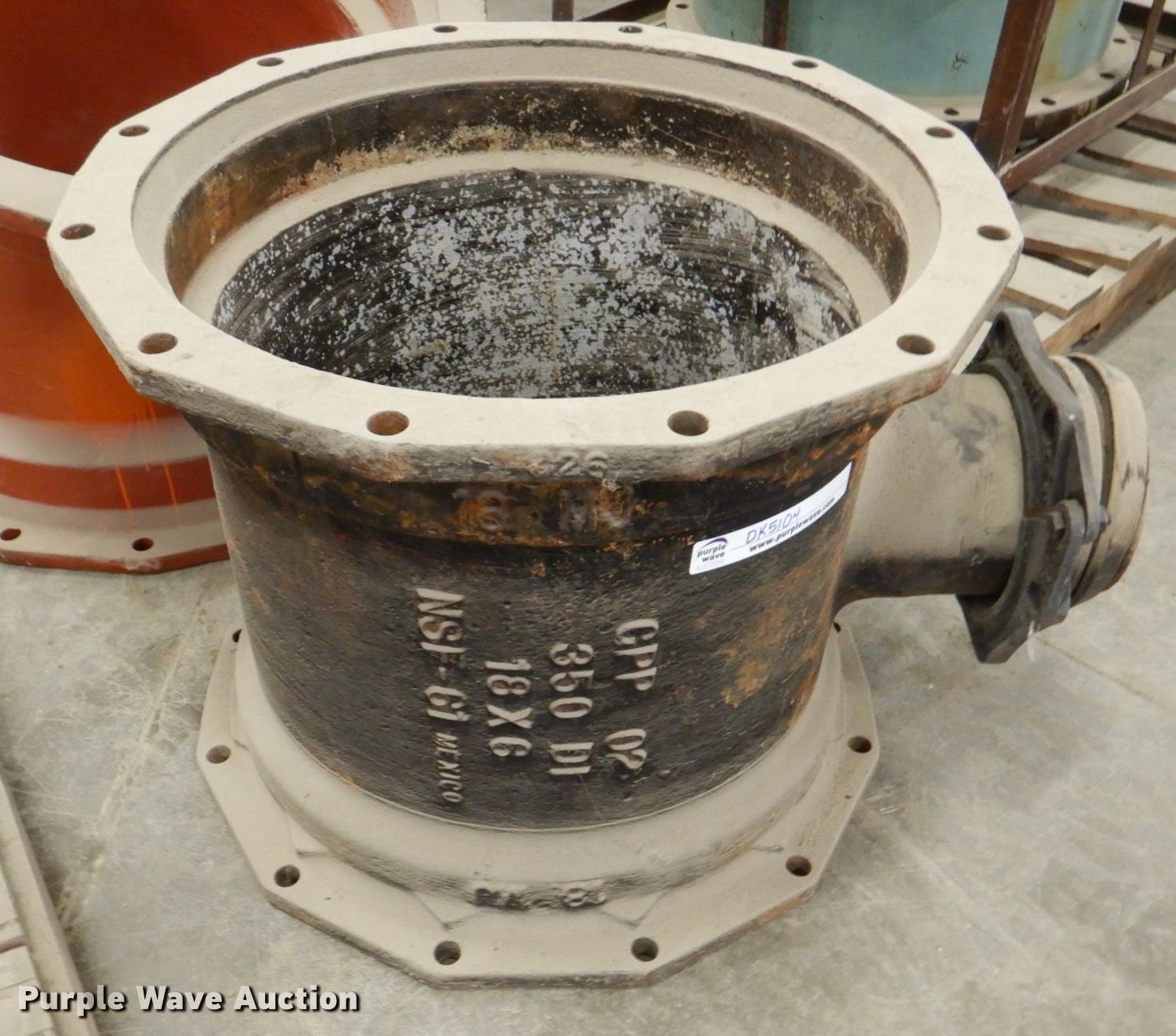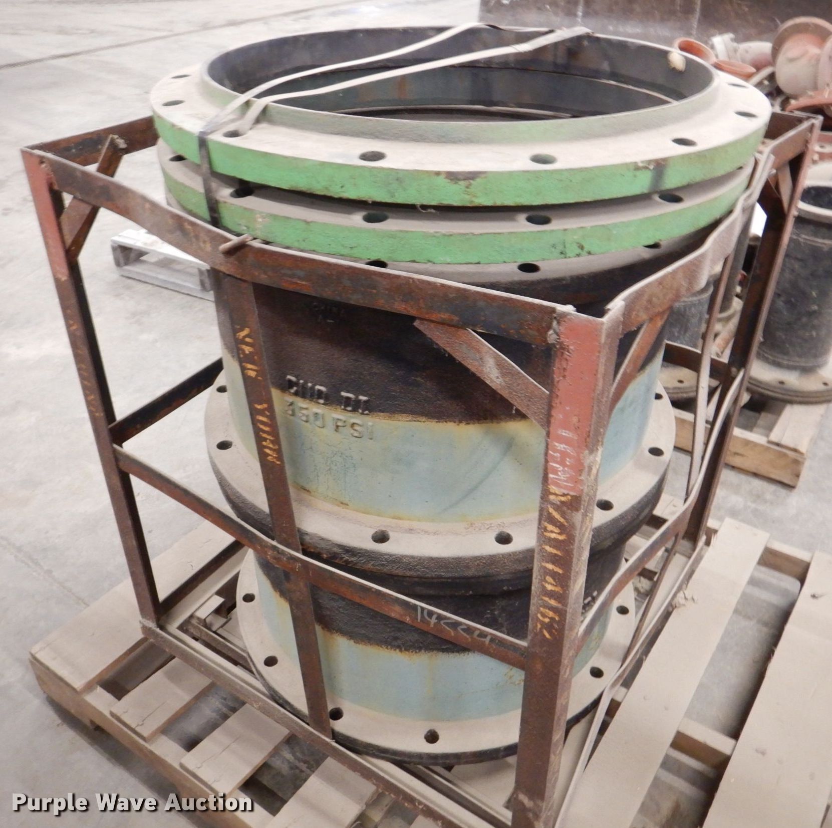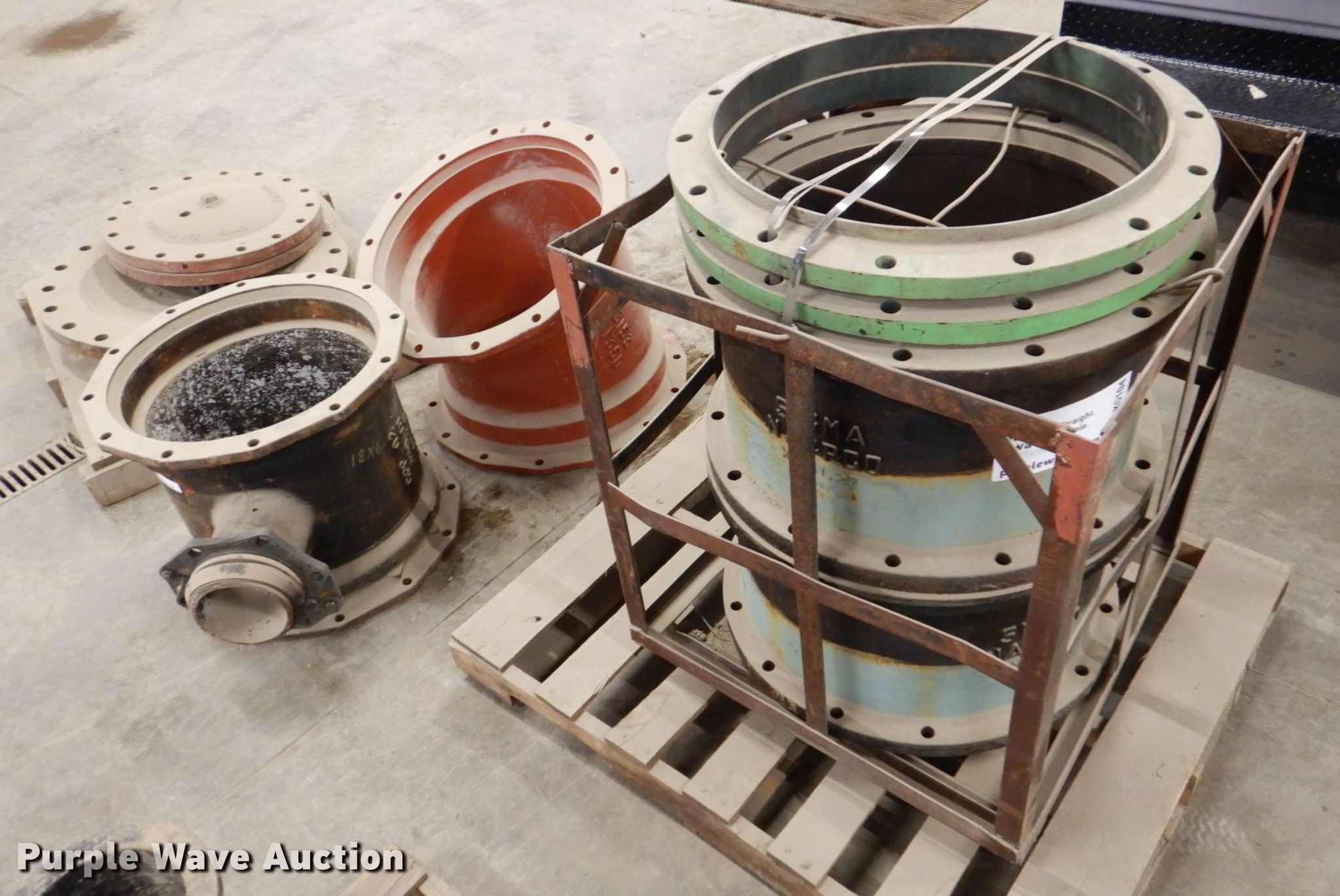 Purple Wave is selling a used Pipe in Iowa. This item is a Sigma flanges with the following: (2) 22" extension, (3) flange caps, 24", (2) 18", T-pipe, 20" angle pipe